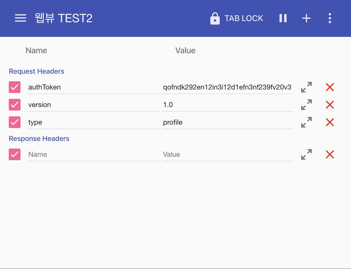 한 가지 주의하실 점은 HTTP Request가 발생할 때 ModHeader가 마지막에 Request Header를 잡아서 변경하므로 코드상에서 authToken을 123으로 설정해서 던져도 ModeHeader에서 authToken을 456으로 세팅되어 있으면 실제 HTTP Request Header authToken은 456으로 설정되어서 날아갑니다.