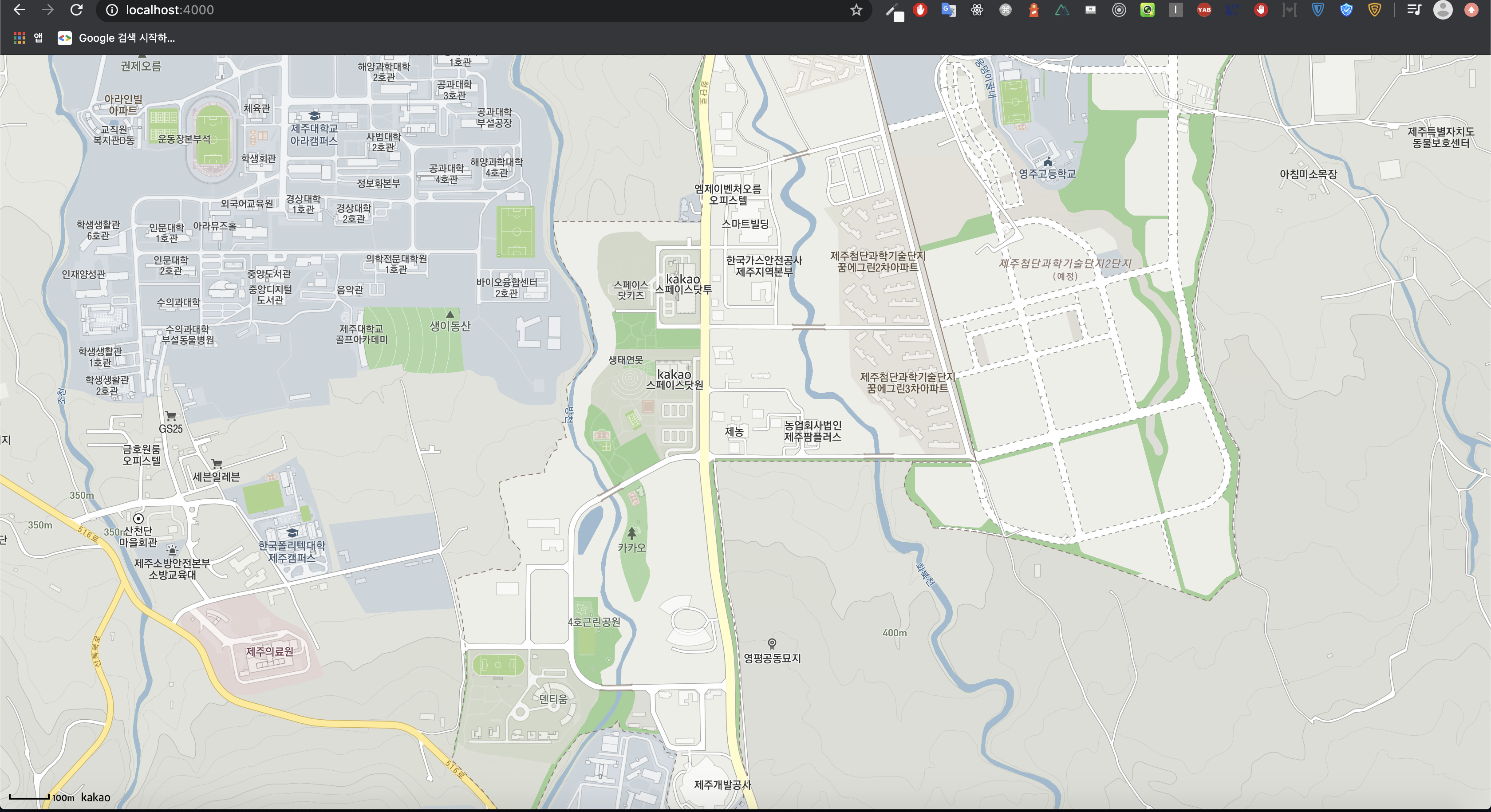 지금까지 카카오 개발자사이트에서 키를 발급받고 서비스 등록, 도메인 등록 후 실제 애플리케이션에서 카카오맵을 사용까지 해봤습니다.
