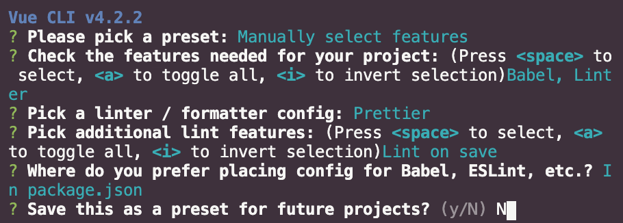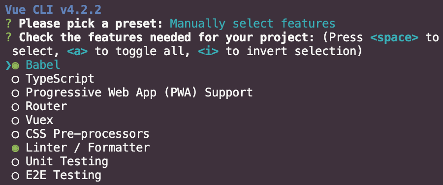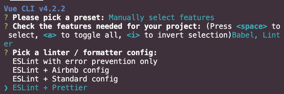 vue/cli 명령어를 활용해서 vue application을 생성합니다. 아래와 같은 순서에 따라서 세팅합니다.
