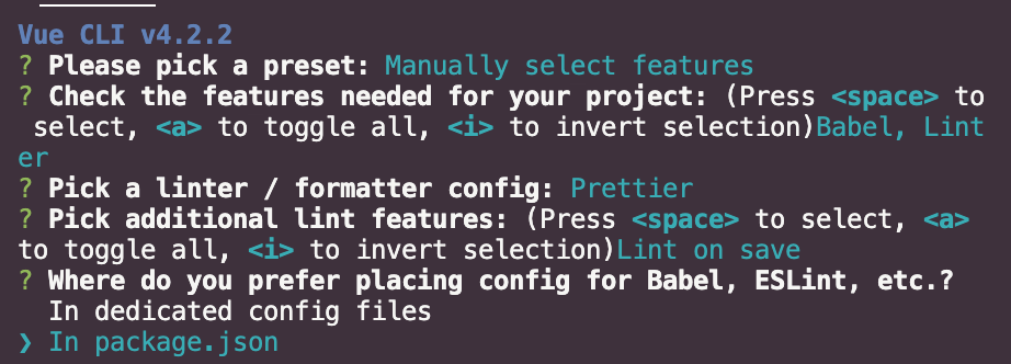 환경설정에 관련된 코드들을 어디에다가 배치할지에 대해 선택합니다. 저는 package.json에 넣겠습니다.