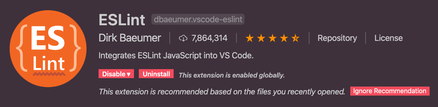 OverviewQ & ARating & Review VS Code ESLint extension Integrates ESLint into VS Code. If you are new to ESLint check the documentation. The extension uses the ESLint library installed in the opened workspace folder. If the folder doesn't provide one the ex
