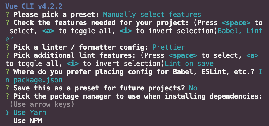 npm이나 yarn을 활용해서 @vue/cli를 설치하고 터미널에서 vue --version을 통해 버전을 확인합니다. 현 시점 필자는 4.2.2 버전을 사용하고 있습니다.