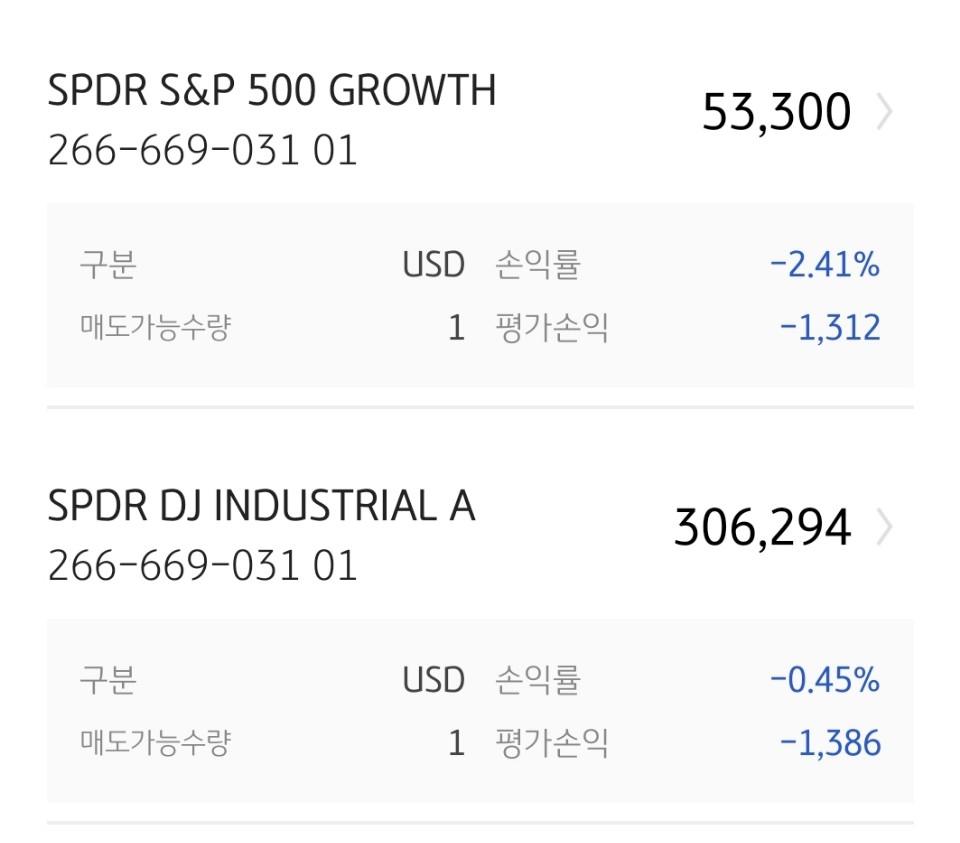 그래서 구매한 종목은 DIA와 SPYG.