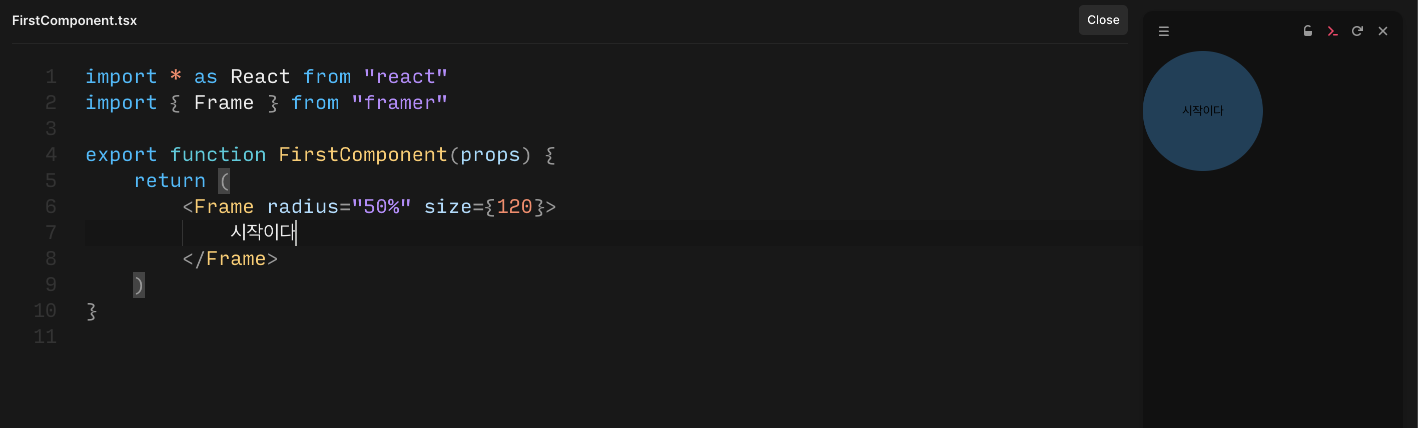 기억이 나실지는 모르겠지만(나셔야 합니다..ㅎ) 위에서 framer 라이브러리에서 Frame이라는 컴포넌트를 가져온 것 기억하시나요?