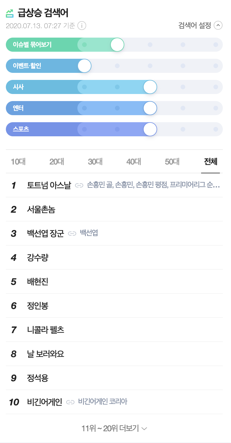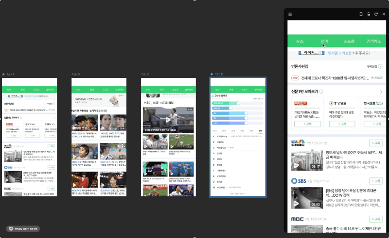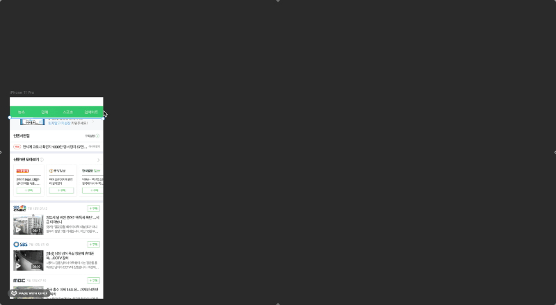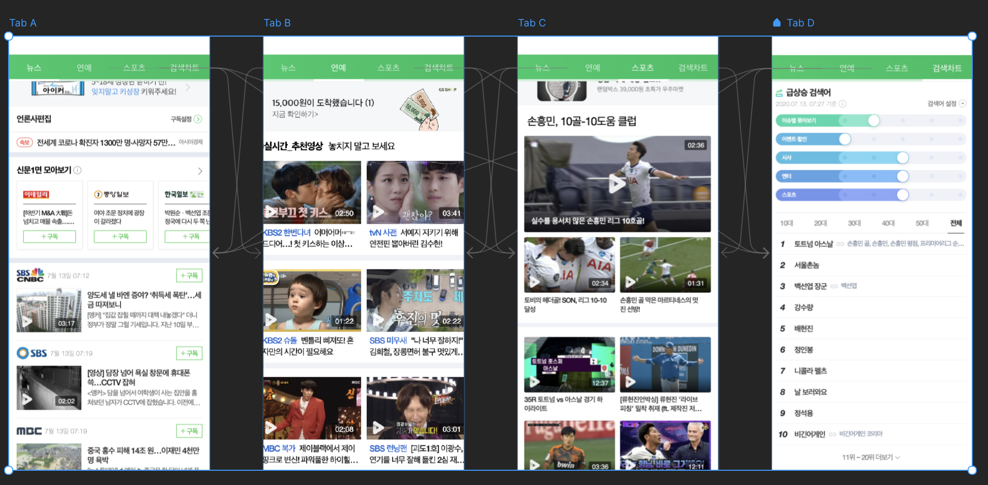 이제 각 탭에 샘플 콘텐츠를 넣어볼게요! 뉴스, 연예, 스포츠, 검색차트에 맞는 샘플 이미지를 삽입합니다.
