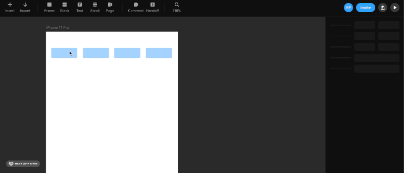 스택 안에 프레임을 삽입하면 이렇게 자동으로 위치가 정렬됩니다. 굉장히 편리하죠? 😎