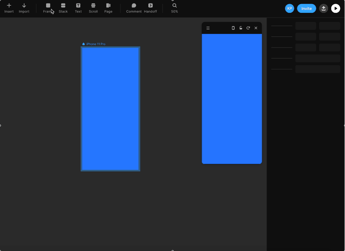 상단의 프레임을 누르고 원하는 디바이스 레이아웃을 추가해 주세요.