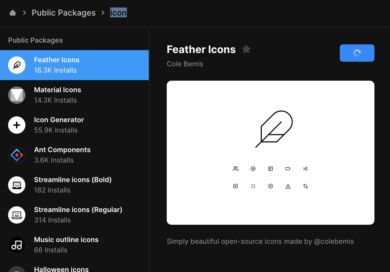 이제 뒤로가기 아이콘을 하나 추가하려고 합니다. 원하는 아이콘을 직접 만들 수도 있지만 저는 디자이너가 아니기에 패키지에 있는 Feather Icons에서 제공해주는 아이콘을 import 하도록 하겠습니다.