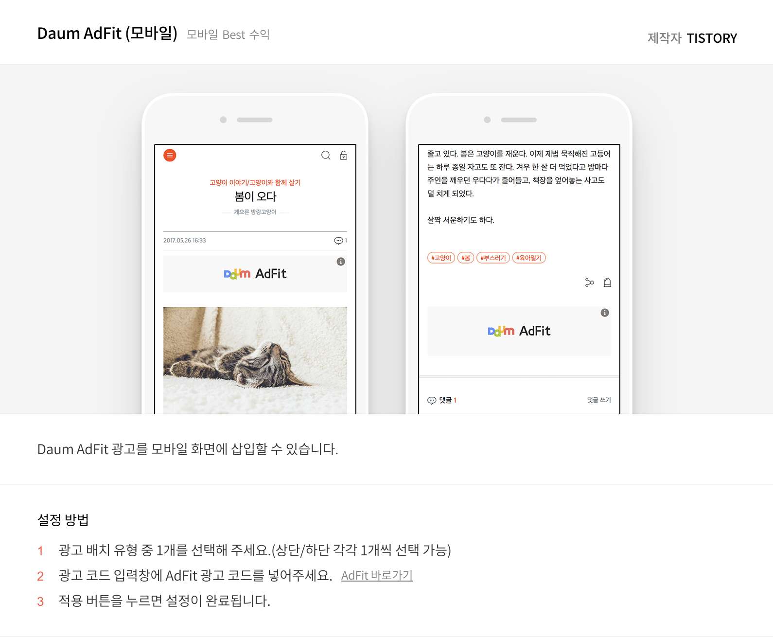 정상적으로 카카오 애드핏 배너를 추가했다면 아래와 같은 이미지가 영역에 맞게 노출될 것입니다.