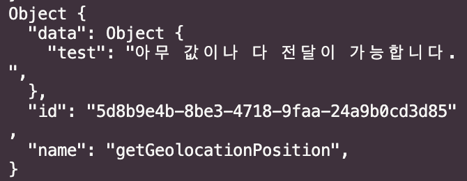 우리는 웹뷰에서 메시지로 전달한 name(위 예시에서 getGeolocationPosition 이름으로 함수 이름을 전달)으로 메서드를 실행합니다.