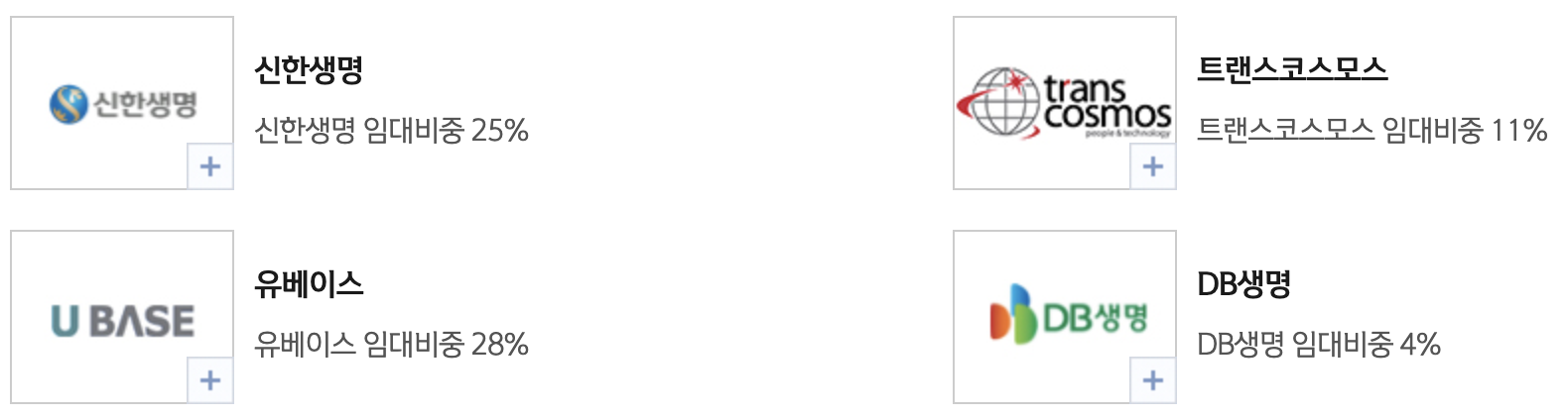 대일빌딩의 임대율은 약 96.7%이며, 잔여 공실 부분에 대하여 신한캐피탈과 신규 임대차 계약 체결 협의 진행 중으로 신한캐피탈과의 임대차 계약 체결 완료 시 임대율 100% 달성이 예상됩니다.