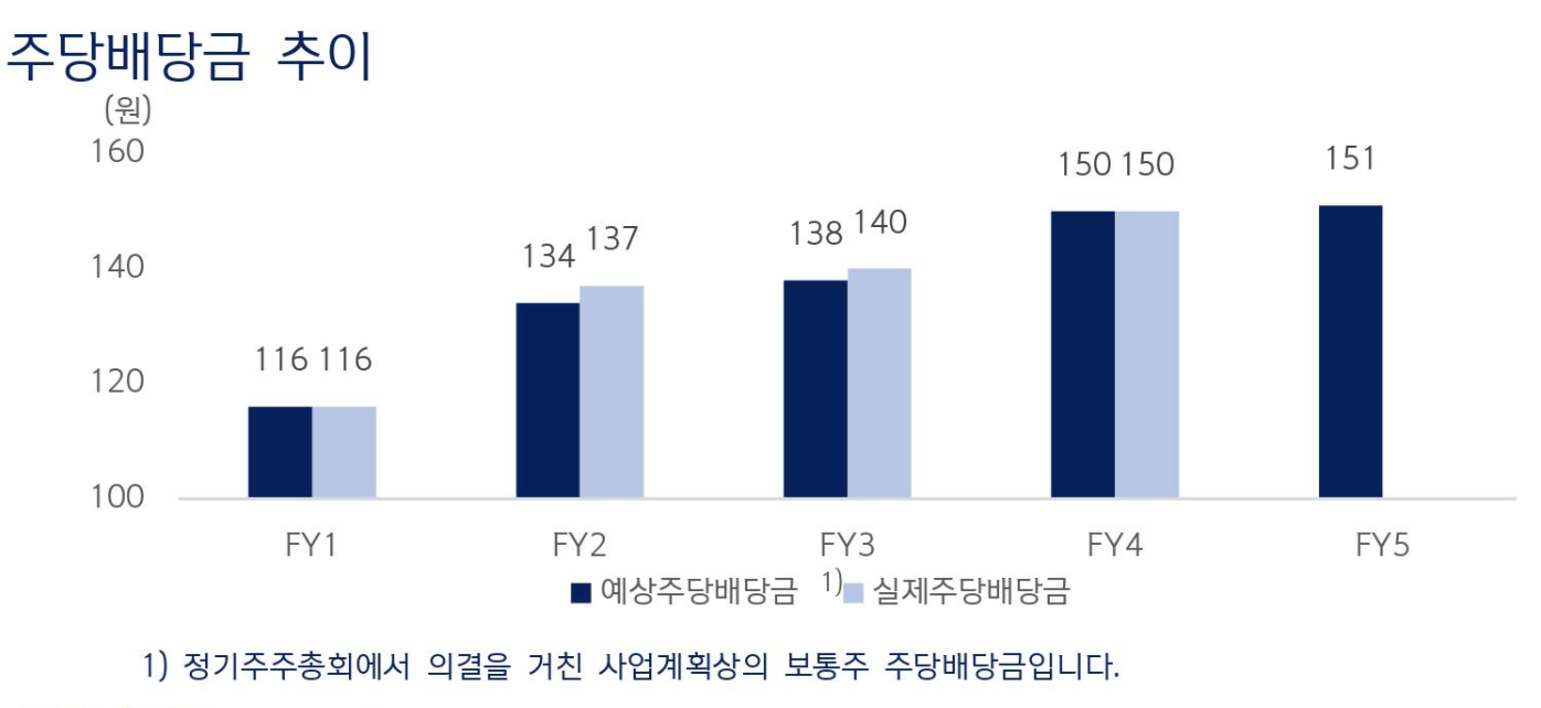 아래는 현재까지 신한알파리츠의 주당배당금 추이를 그래프로 표현한 모습입니다.