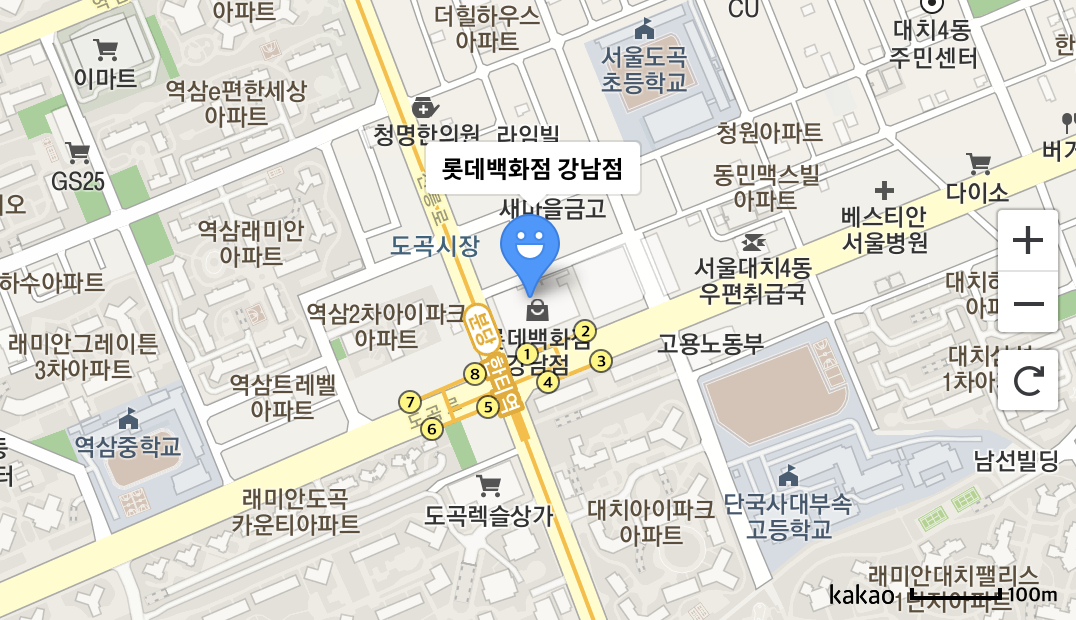 -분당선 한티역 출구 전방에 위치하고 있으며, 한티역 사거리에 위치하여 대중교통 및 자가용을 이용한 접근성이 매우 우수함.