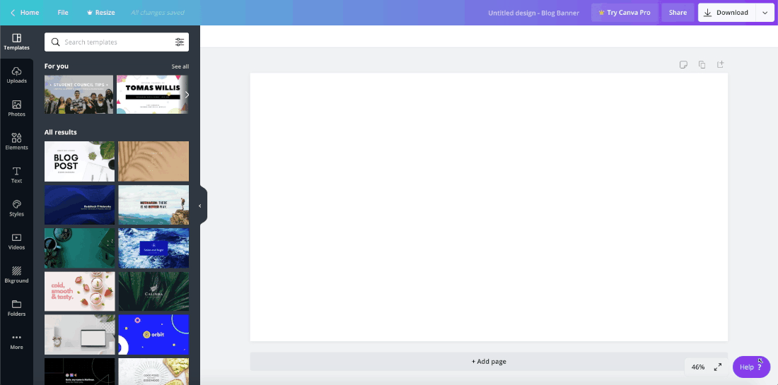 저는 Canva라는 사이트에서 썸네일을 제작하는데 정말 좋은 점은 무료로 사용할 수 있다는 것입니다. 물론 Pro 버전도 있긴 하지만 무료로 이용해도 꽤 퀄리티있는 썸네일을 제작할 수 있습니다.