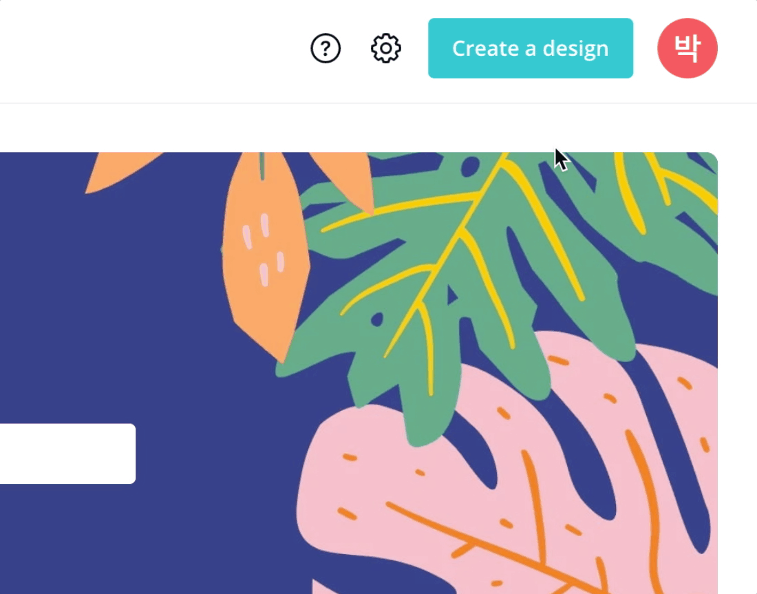 우측 상단의 Create a design 버튼을 누르고 원하는 썸네일 타입을 선택합니다. 저는 블로그 배너 타입을 선택하도록 하겠습니다. 원하는 썸네일 타입을 선택하고 진행하시면 됩니다.