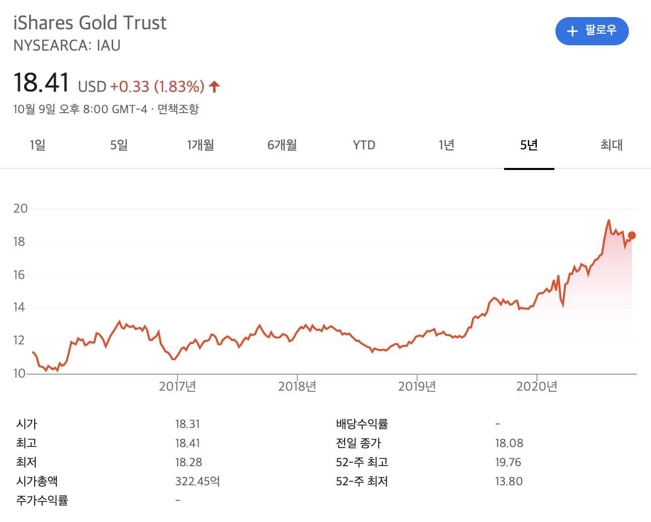 주가가 하락하면 그에 대한 헷지전략으로 채권이나 금을 보유하는 것이 보편적인 투자 방법입니다. 한국금거래소에서 골드바를 구매하는 방법도 있지만, 이 방법은 구매 가격과 판매 가격이 다르기 때문에 투자하기 조금 부담스러운 건 사실입니다. 그래서 금을 구매하고 싶을 때 실물 금 가격을 추종하는 ETF를 구매하는 것이 하나의 대체 방법이라고 생각합니다. 그중에서도 IAU ETF가 GLD ETF보다 운용수수료가 저렴하므로, 제가 만약 금 ETF에 투자를 한다면 IAU ETF에 투자를 할 것 같네요.