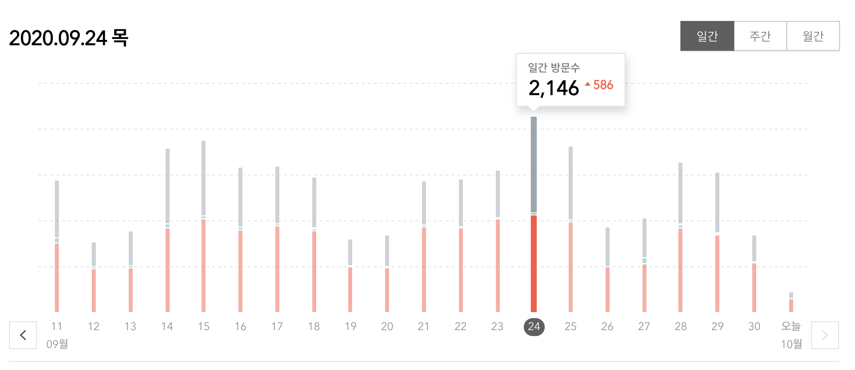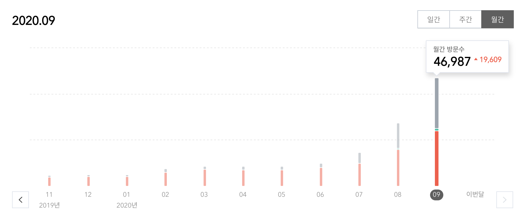 2020년 9월 저의 블로그가 어떤 성장을 이뤄냈고, 어떤 통계를 보여주고 있는지 한번 살펴보도록 하겠습니다.
