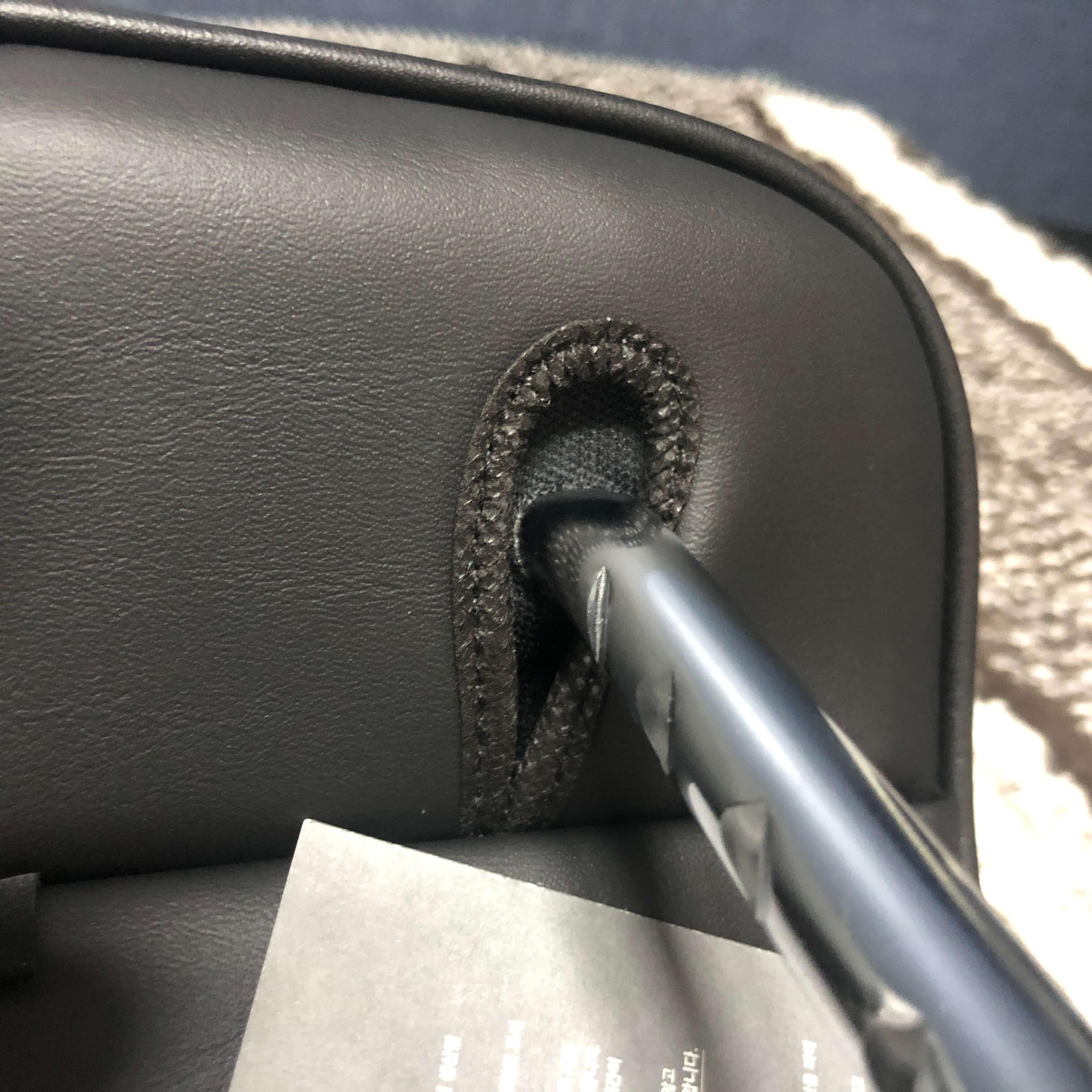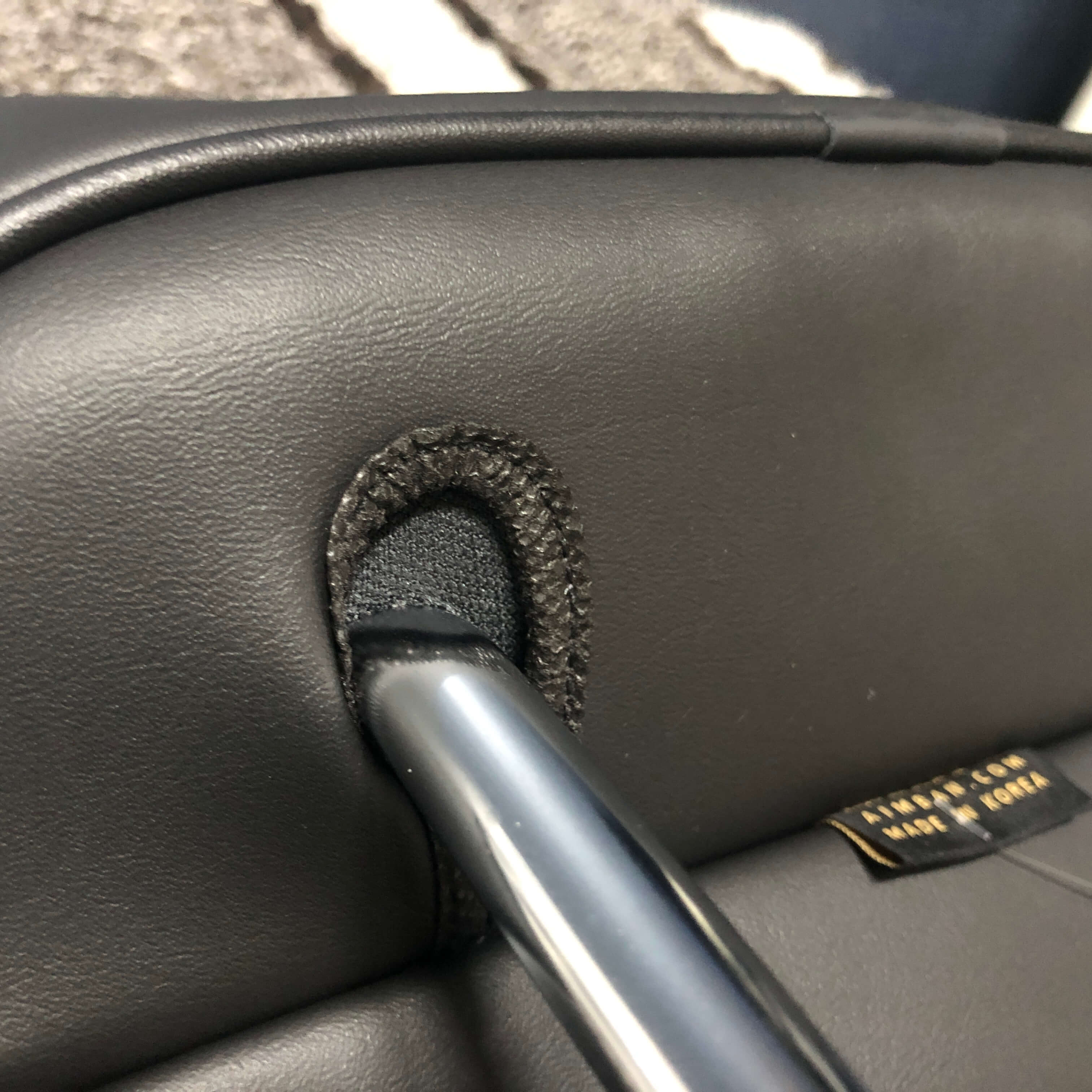 순정 헤드레스트를 제거했다면 이제 저희가 구매한 아임반 헤드레스트로 교체해줍니다. 구매한 헤드레스트에 고무로 패킹이 되어있을텐데 이 고무마개를 제거해야 헤드레스트를 넣는 구멍에 넣을 수 있습니다. 고무마개를 제거해줍니다.