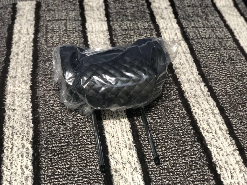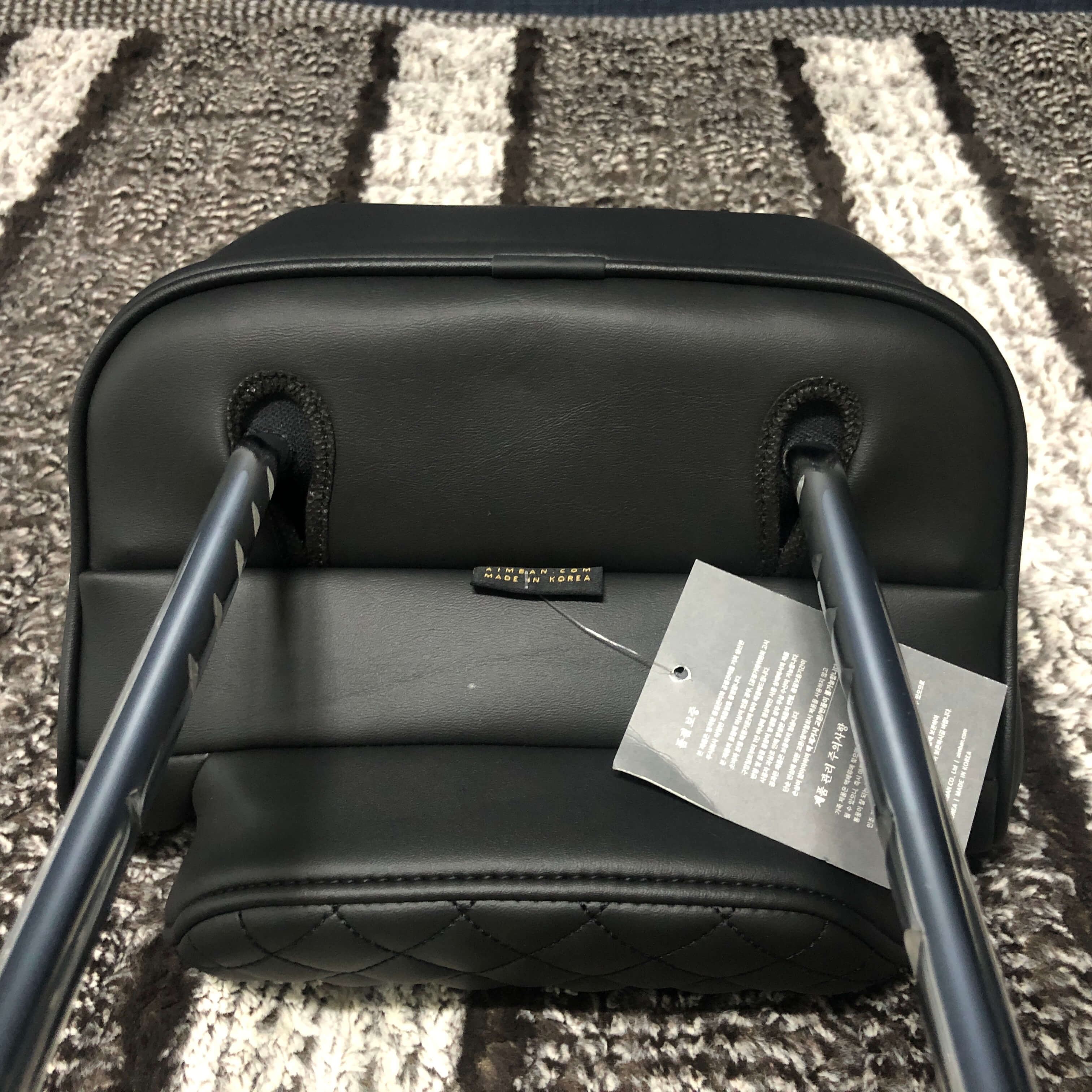 배송된 헤드레스트의 상태는 굉장히 양호해 보입니다. 혹시 가죽이 긁히거나 할까봐 비닐봉지로 감싸진 모습입니다.