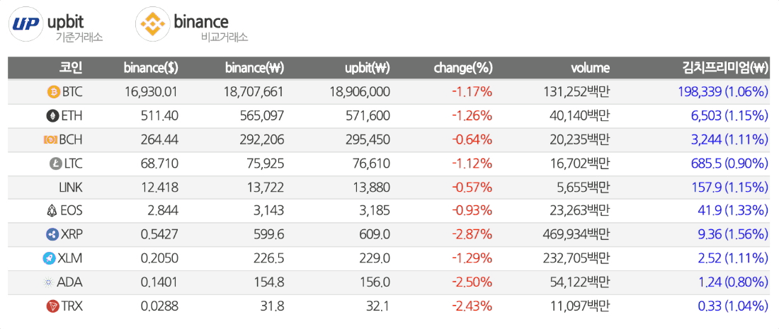 가상화폐(비트코인) 김치프리미엄 비교 크라이프라이스, cryprice, cryptoprice, crptocurrency premium