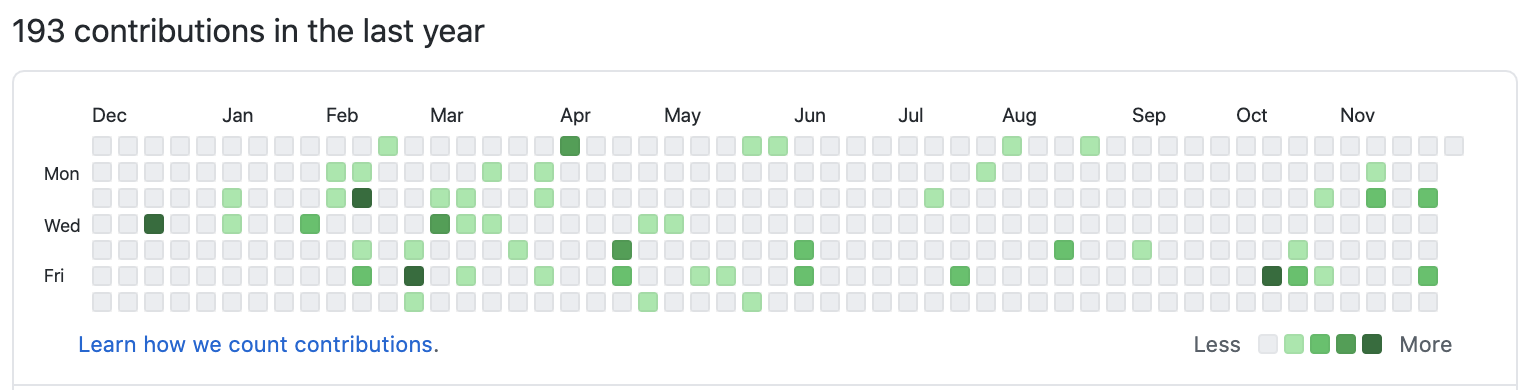 프로젝트 참여자 4분의 현재까지(2020.11.30) 기준 커밋 목록 상태입니다. 솔직하게 말씀드리면 private repo가 존재하지 않는 이상 저정도 contributions를 보이는 것은 개발 접은 것처럼 보일 정도로 참 듬성듬성하게 찍혀있네요.