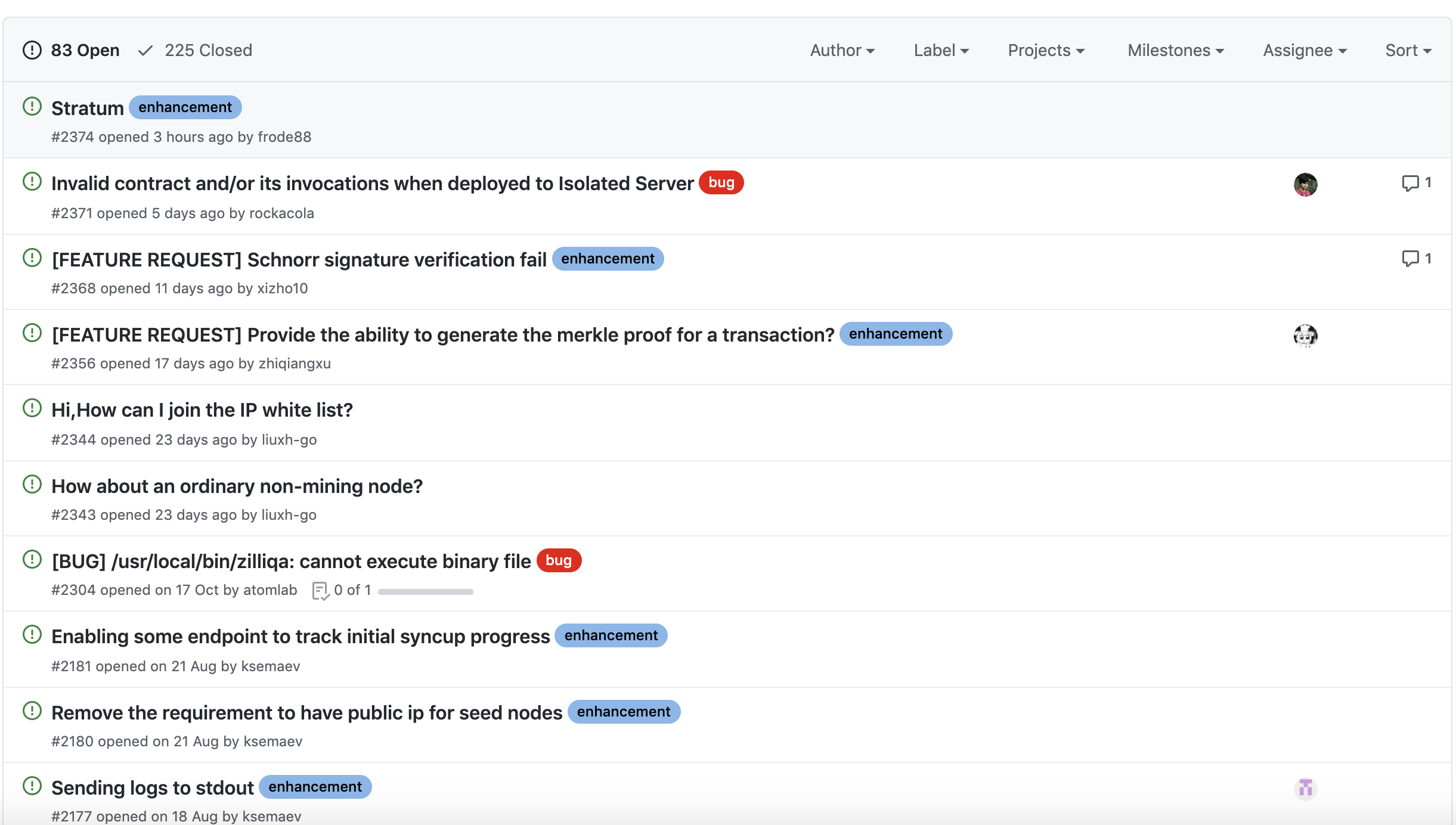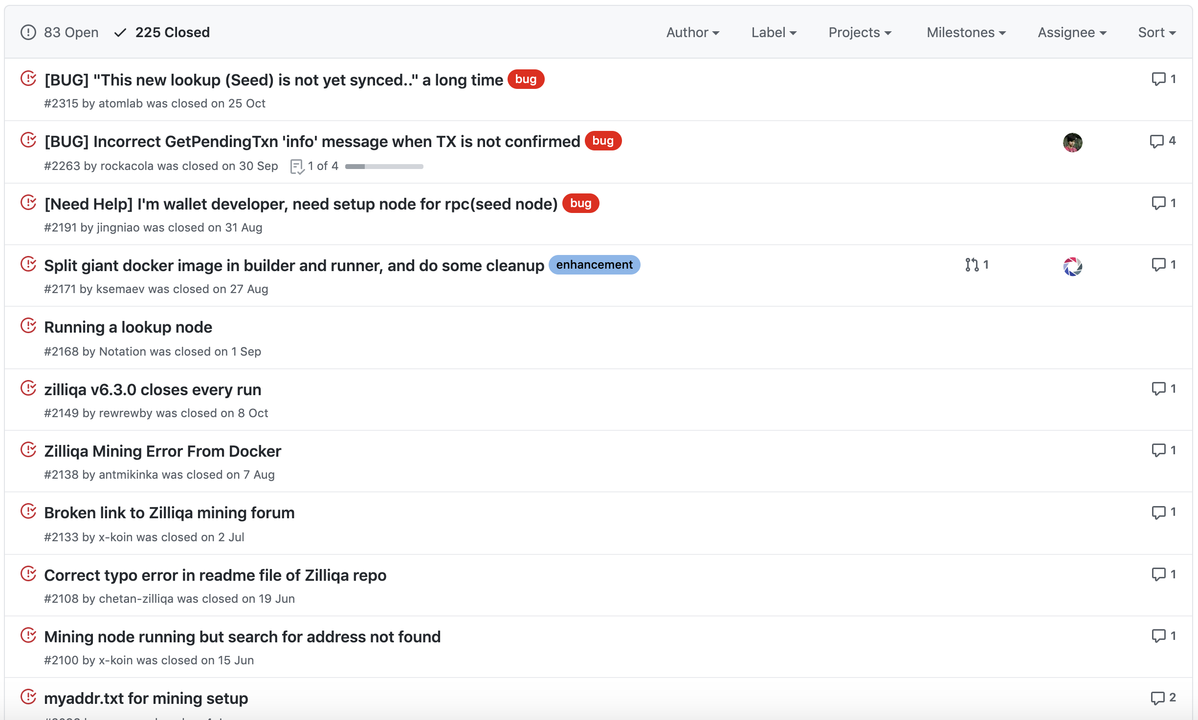 프로젝트에서 가장 중요한 부분이 개인적으로 버그나 개선사항이 생겼을 때 이슈를 작성하고 관리하는 것이라고 생각합니다. 질리카 프로젝트에서 이슈들까지 제대로 관리하고 있다면 해당 코인을 개발하는 개발진들의 개발 참여도는 굉장히 긍정적으로 보인다고 말씀드리고 싶습니다.
