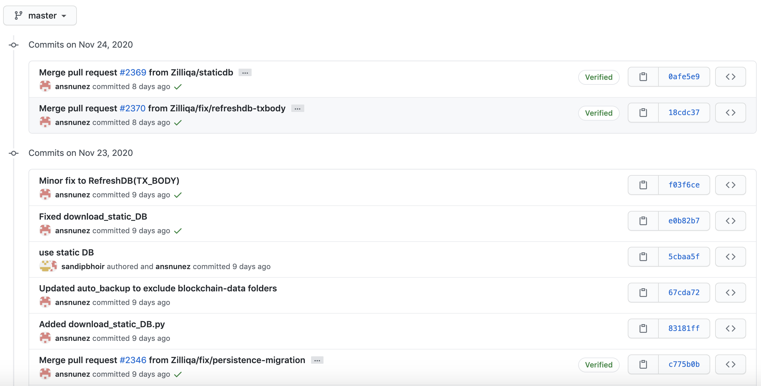 질리카 메인 저장소로 한번 개발진들의 개발 참여도나 개발 현황을 한번 살펴보도록 하겠습니다. 질리카 프로젝트에서 Zilliqa 저장소로 한번 검증하도록 해보겠습니다.