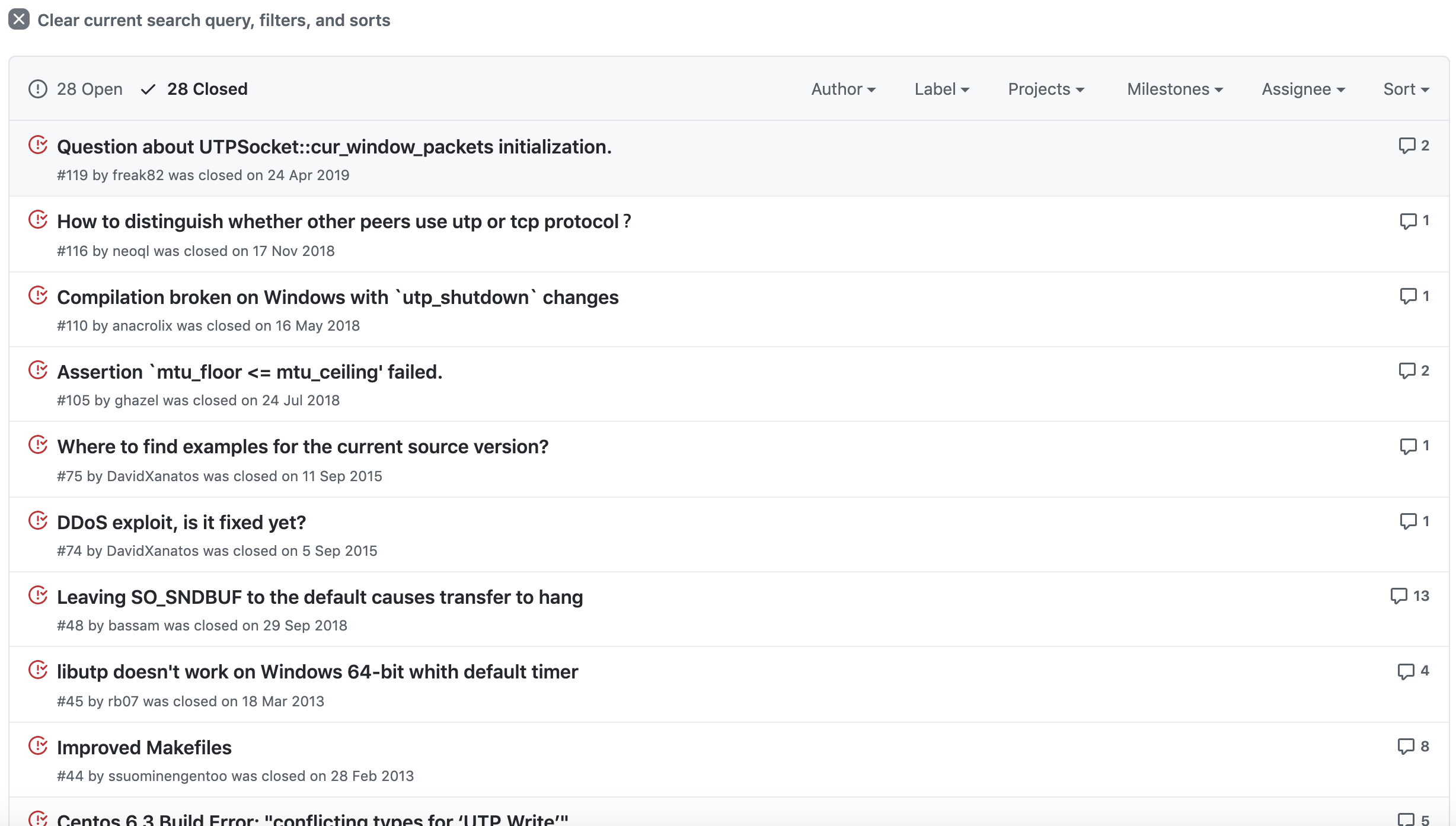 코인과 관련된 저장소 중에 가장 최근에 업데이트된 저장소는 libutp인 것 같습니다. 9월 17일에 업데이트하고 현재까지 업데이트된 현황이 없습니다. 그래도 libutp 저장소에서 개발자들이 어떻게 개발했는지 한번 살펴보도록 합니다.