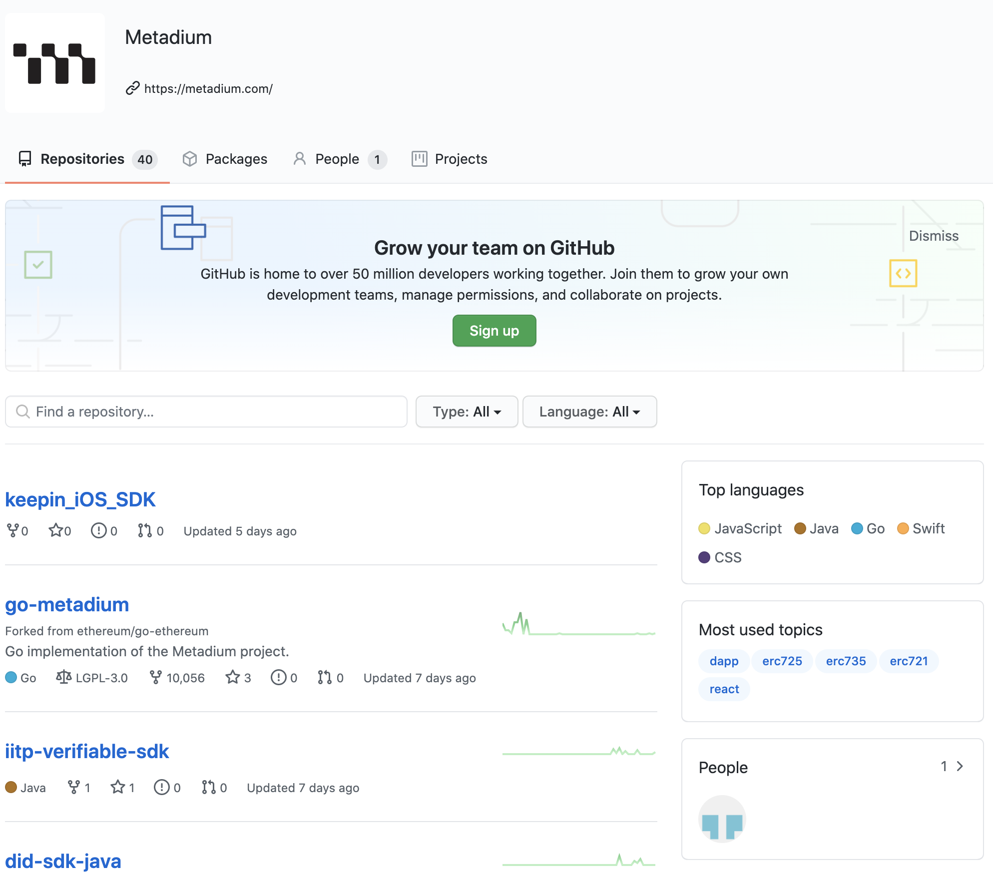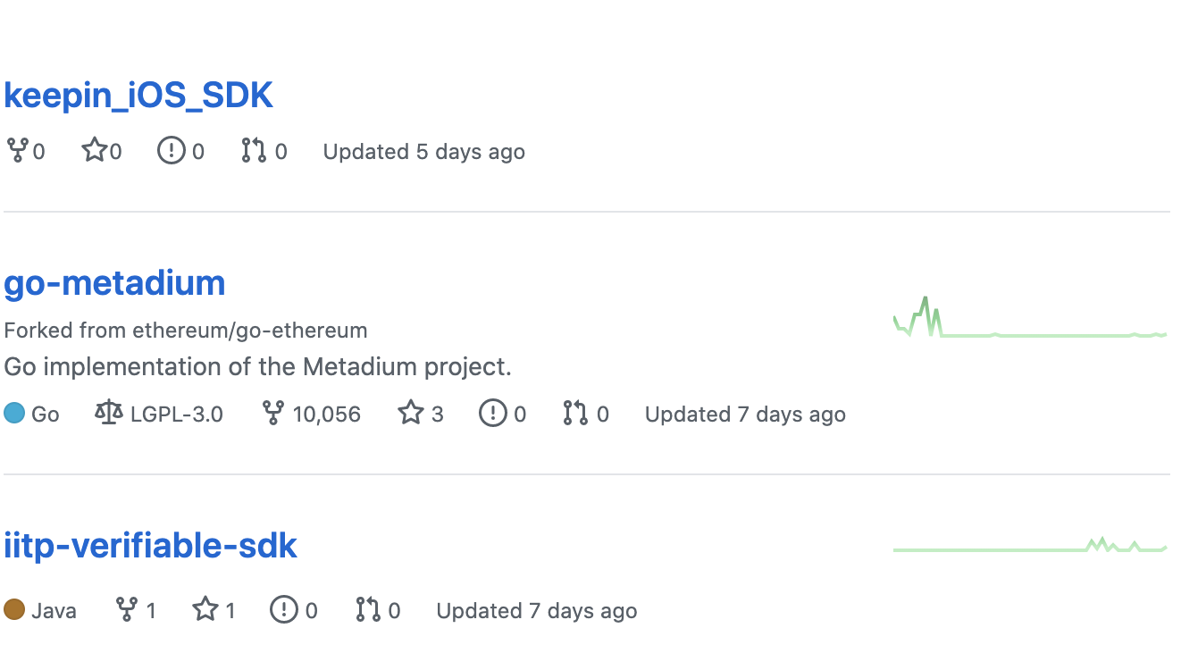 메타디움 깃허브 프로젝트에는 현재 40개의 프로젝트가 공개되어 있고, 아래 3개의 프로젝트 정도가 조금 빈번하게 업데이트가 되는 편입니다. 나머지 프로젝트는 업데이트가 된지가 좀 됐네요. 2019년도부터 업데이트가 되지 않은 프로젝트가 대부분인 것 같습니다.