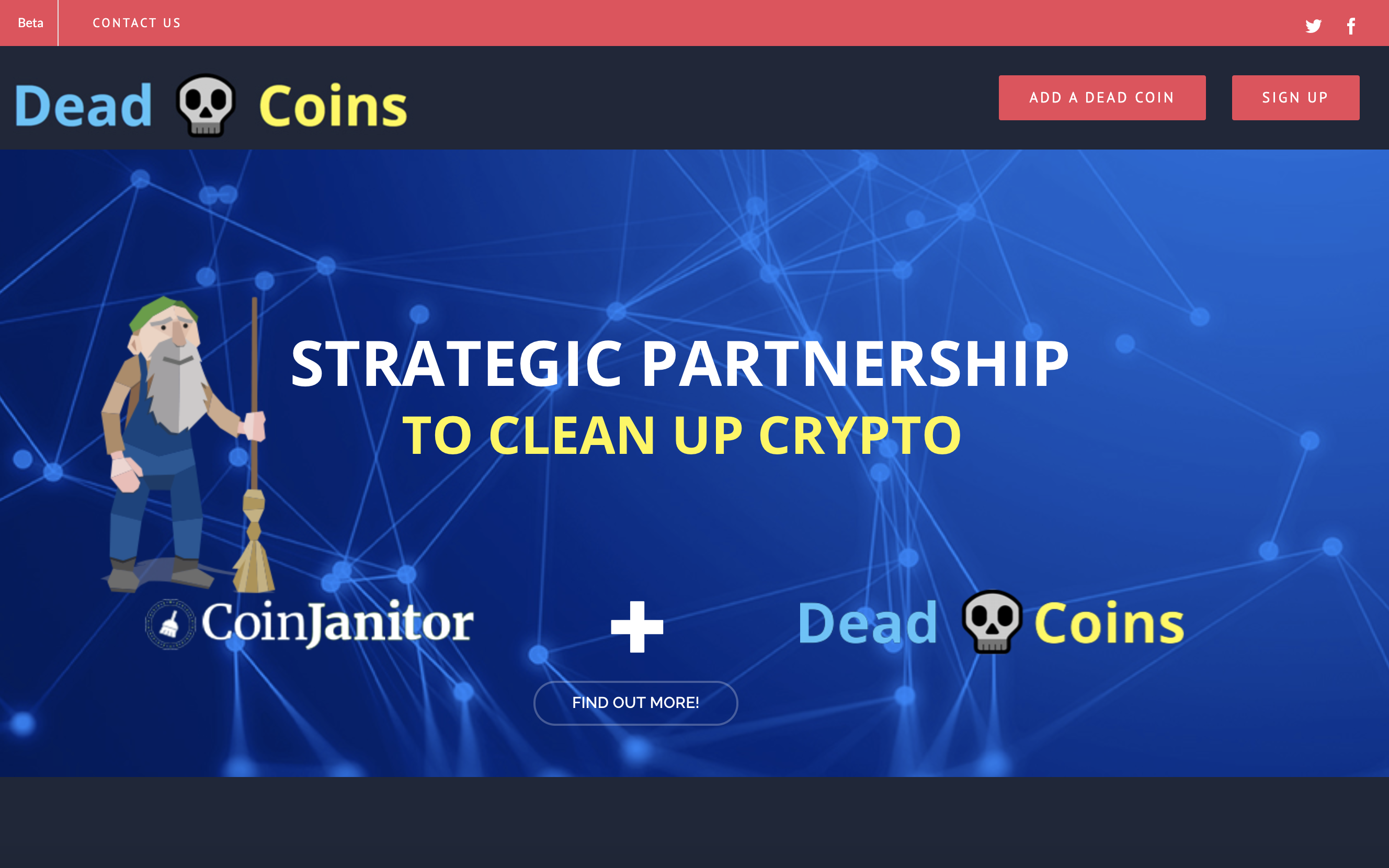 Dead Coins 사이트는 스캠이라고 판단되는 코인들이 등록되어 있는 사이트입니다. 무조건 맞다기 보다는 어느정도 신빙성있는 정보를 기반으로 코인 목록에 등재되니 해당 내용을 같이 참고하면 스캠코인을 거르는데 도움이 될 것입니다.