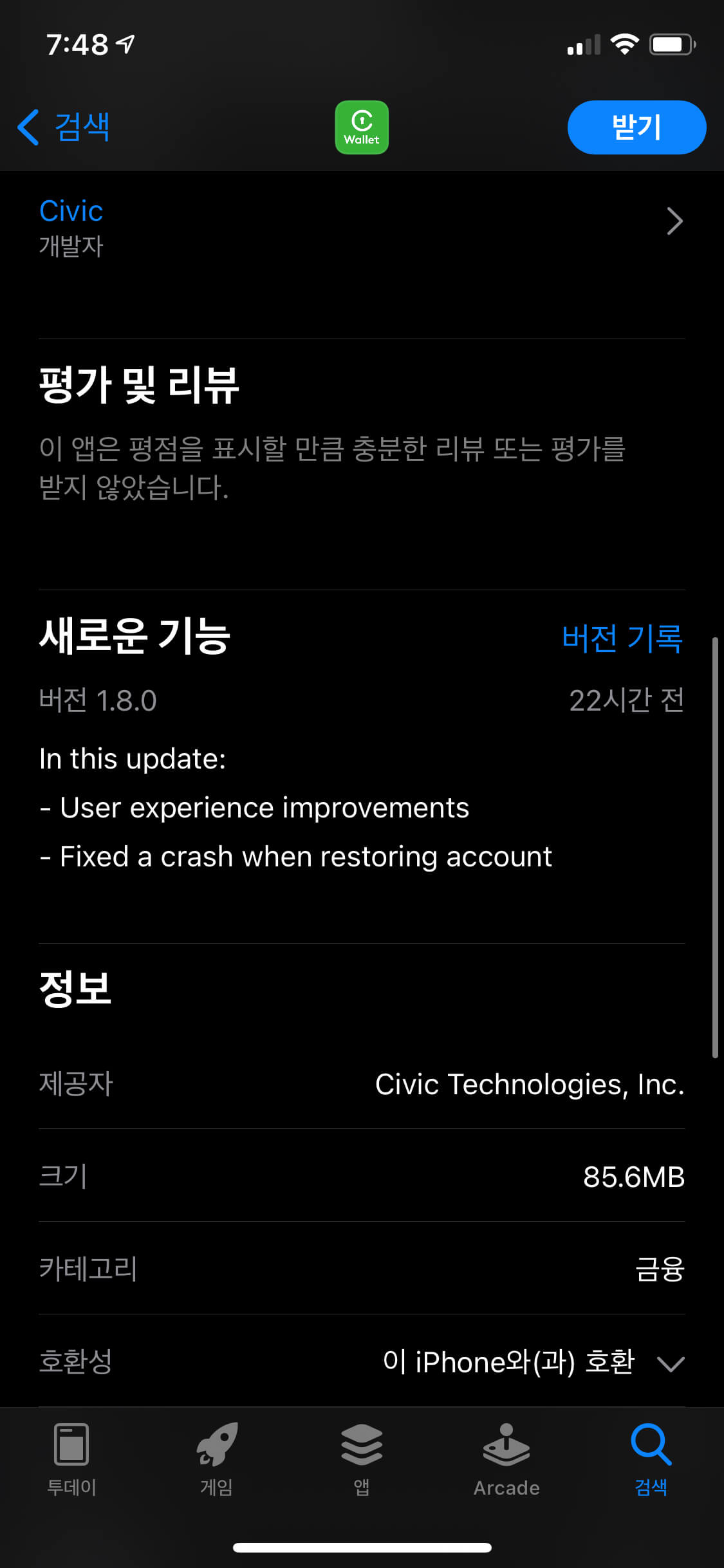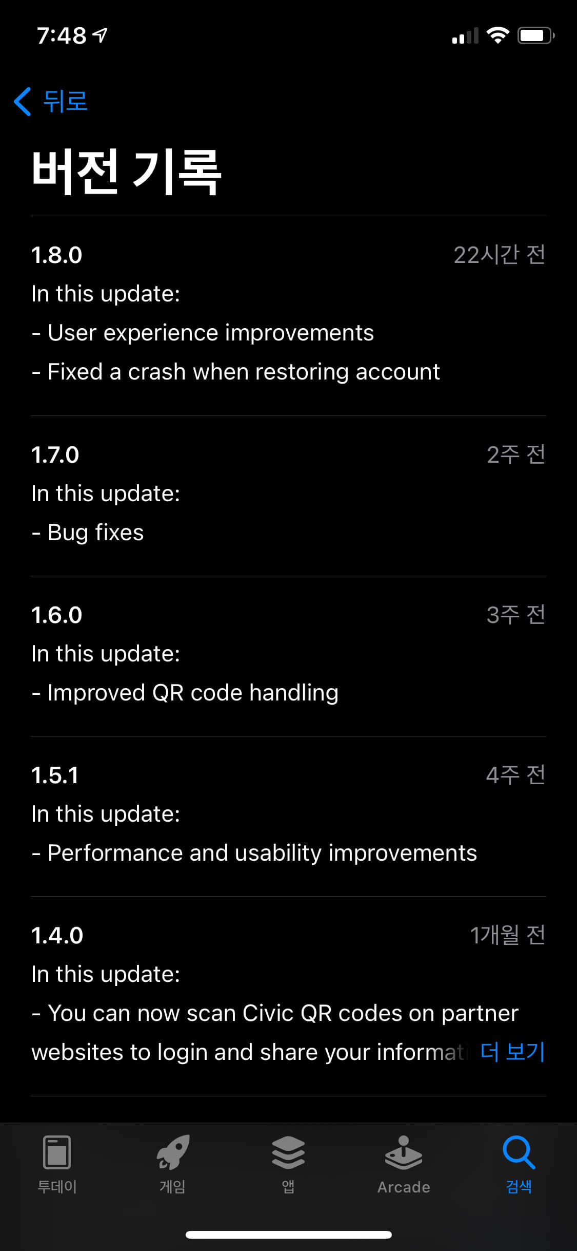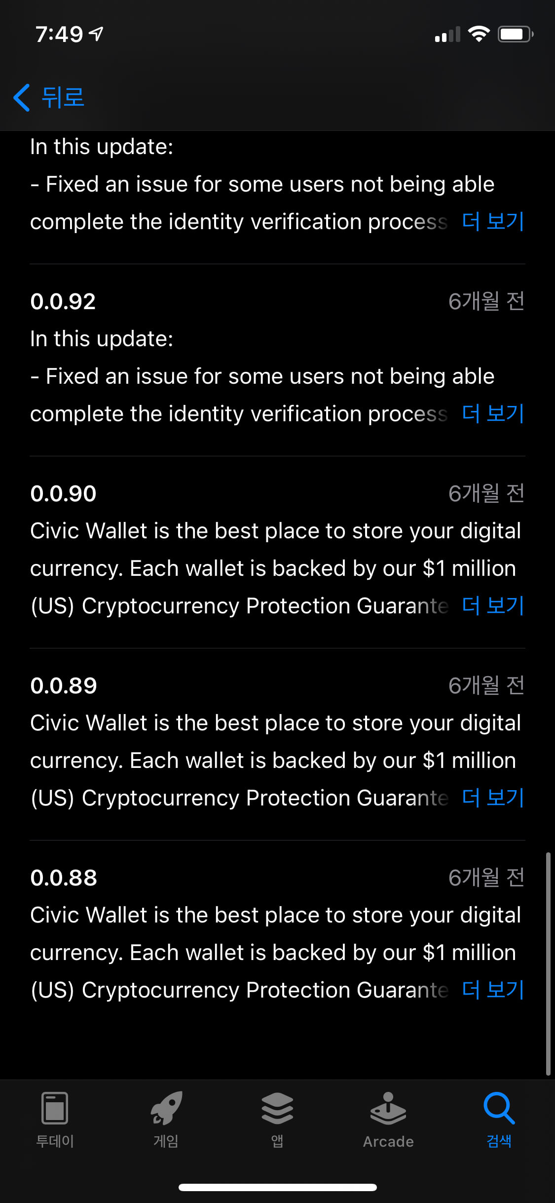 만약 실제 해당 코인 프로젝트에서 구현한 앱이 존재한다면 해당 앱의 업데이트 주기를 확인하는 것도 스캠코인 판별에 굉장히 도움이 될 것입니다. 예를 들어 Civic에서는 애플리케이션을 iOS 마켓에 올려놨는데요. 해당 애플리케이션의 업데이트 주기와 기능 추가와 관련된 버전 기록들을 확인하면 스캠 코인 판별에 굉장히 좋은 지표가 되겠죠?