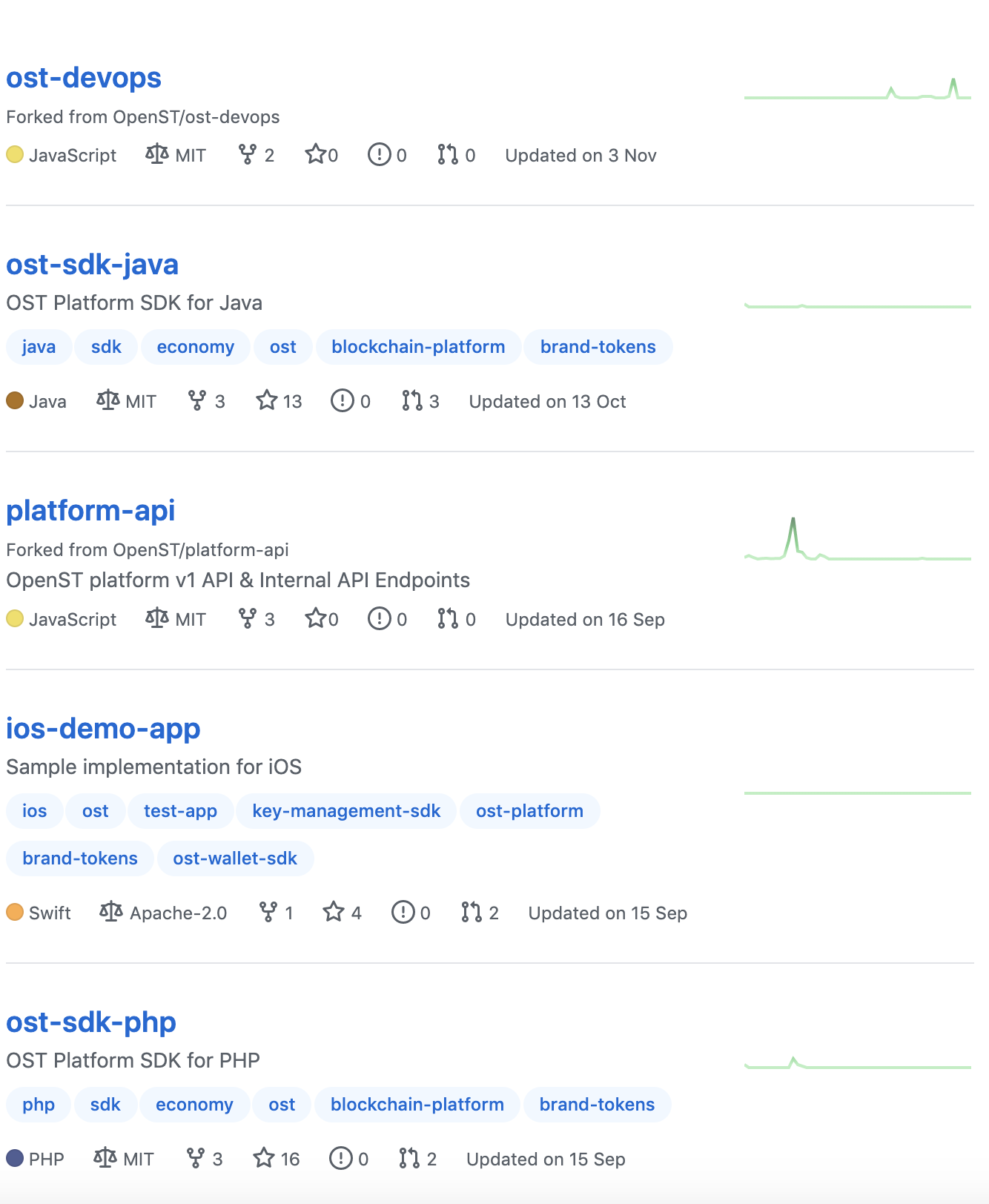 반면에 오에스티 코인 깃허브 프로젝트의 업데이트는 훨씬 더디게 진행되고 있다는 점을 확인할 수 있습니다. 사실 오에스티 코인 정도면 양반일 수 있습니다. 현재 2020년 12월인데 2019년에 업데이트한 후 한번도 개발을 하지 않은 프로젝트도 굉장히 많죠. (물론 오에스티 코인이 현재 개발을 잘 진행하고 있다는 이야기는 아닙니다.)