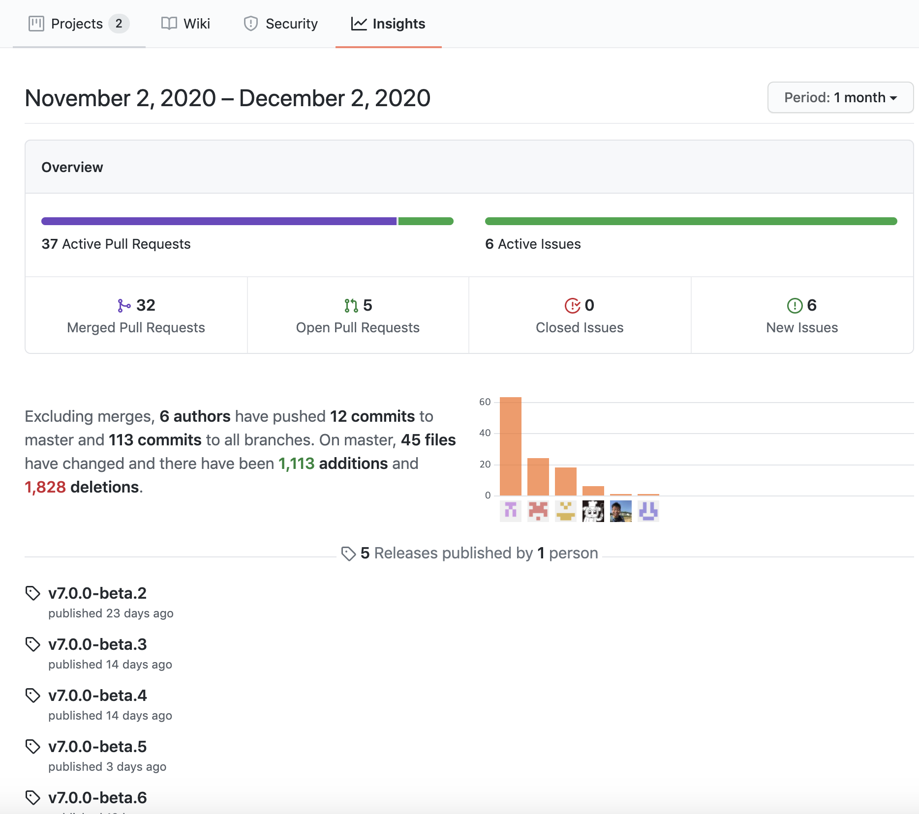 상단의 Insights 탭에서 프로젝트 전체적인 개요를 확인할 수 있습니다. 프로젝트 업데이트 사항을 전체적으로 빠르게 확인하고 싶다면 이 부분을 참고하시면 도움이 됩니다.