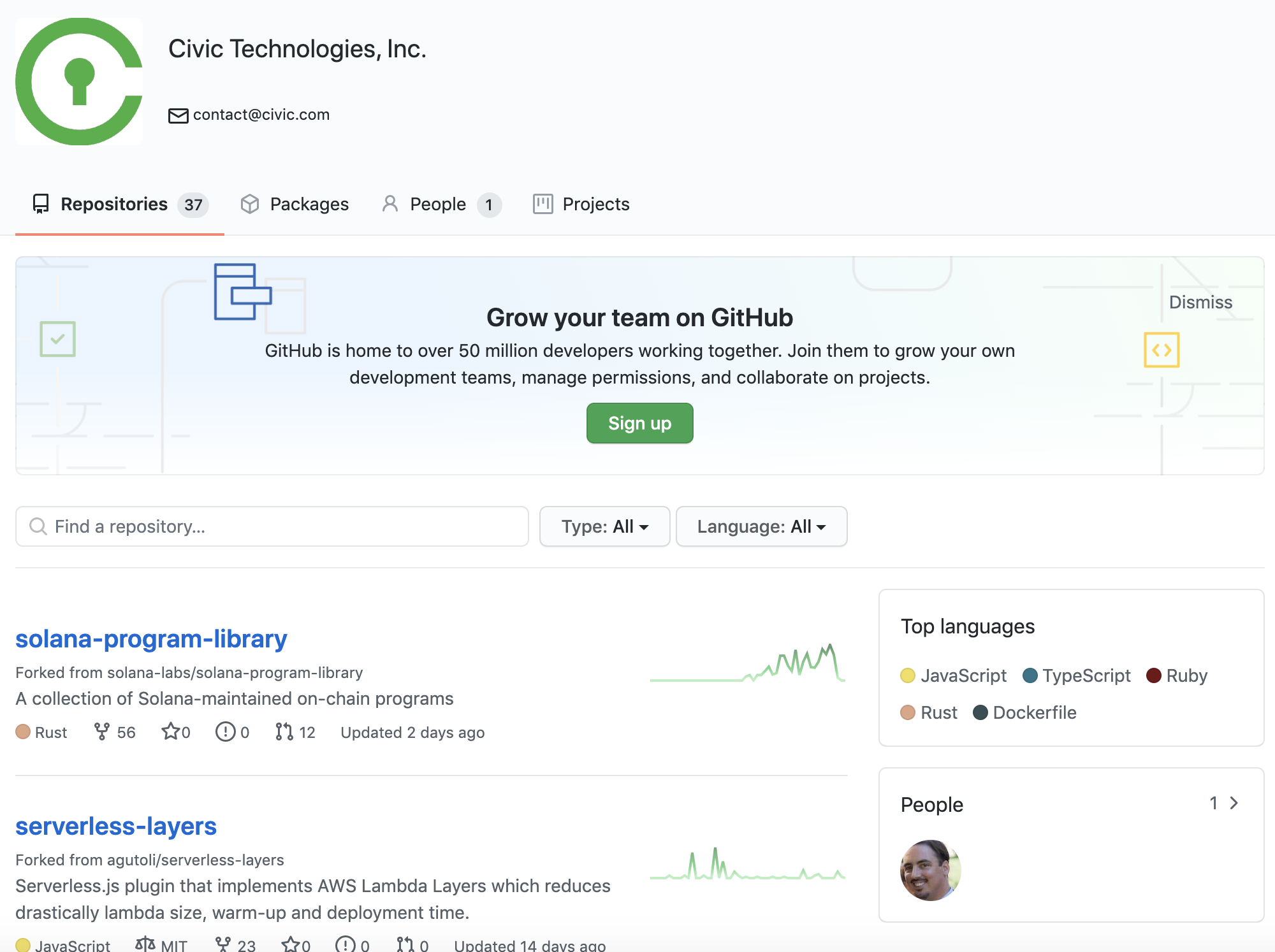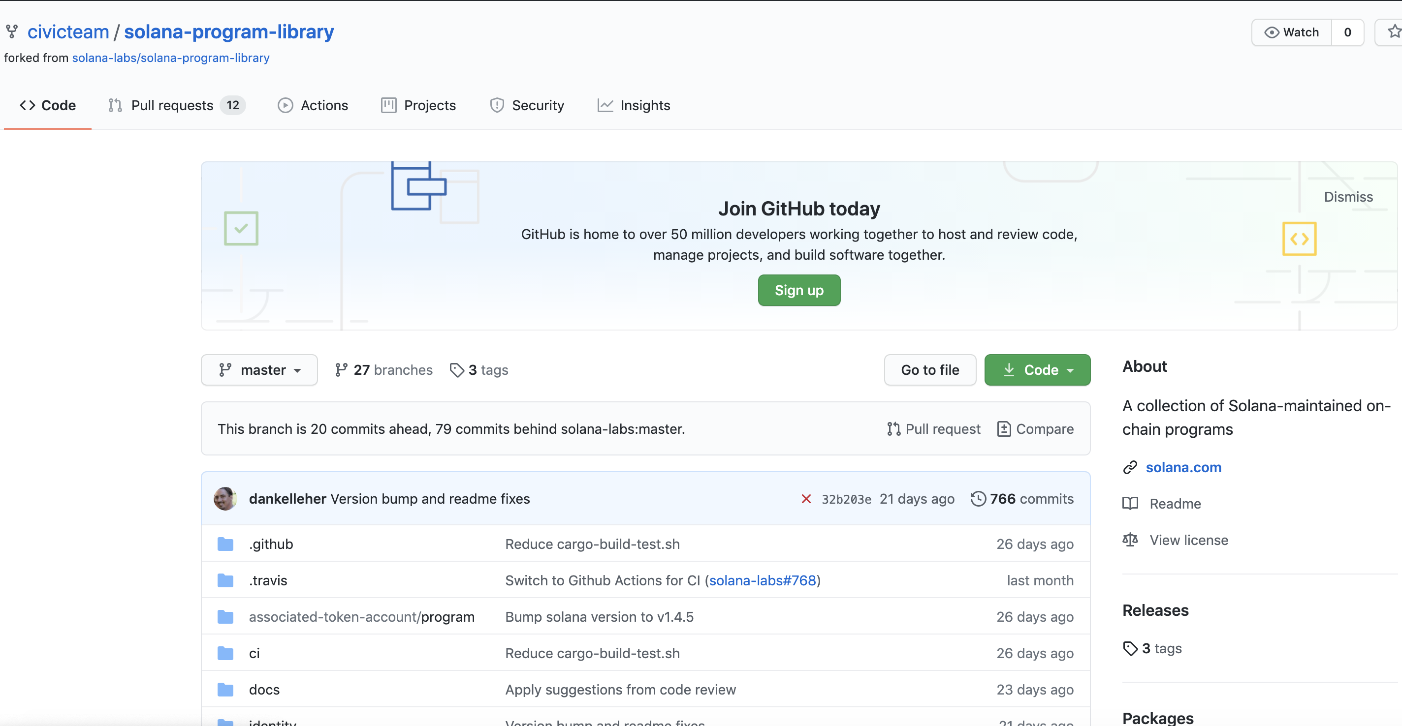 시빅 개발진 측에서 최근 수정한 solana-program-library 저장소를 살펴보면 이또한 암호화폐 앱을 쉽게 구현하게 도와주는 solana 솔루션을 사용하고 있는 것 처럼 보이네요.