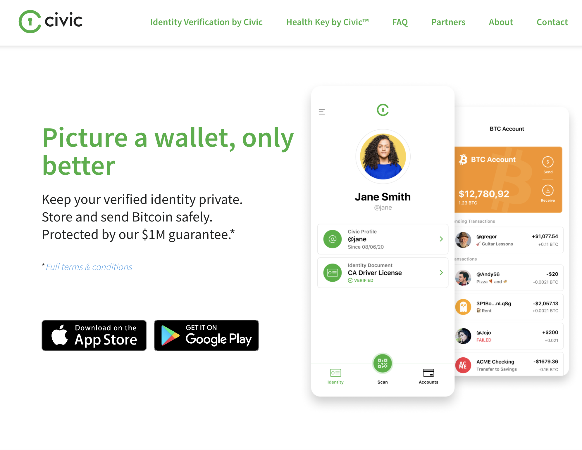 Keep your verified identity private because Civic gives you the flexibility to only share your identity information with companies you trust. Store and send Bitcoin (BTC) safely. Your Bitcoin is protected by our $1 Million Cryptocurrency Protection Guarant