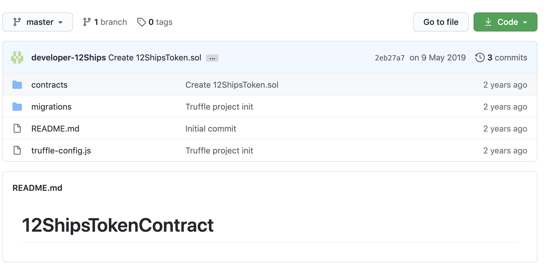12ShipsTokenContract 저장소를 확인해보면 딱히 코드가 존재하지 않는 것을 확인할 수 있습니다. 해당 저장소에서 딱히 개발한 것 같진 않네요. (벌써부터 냄새가 킁킁....)