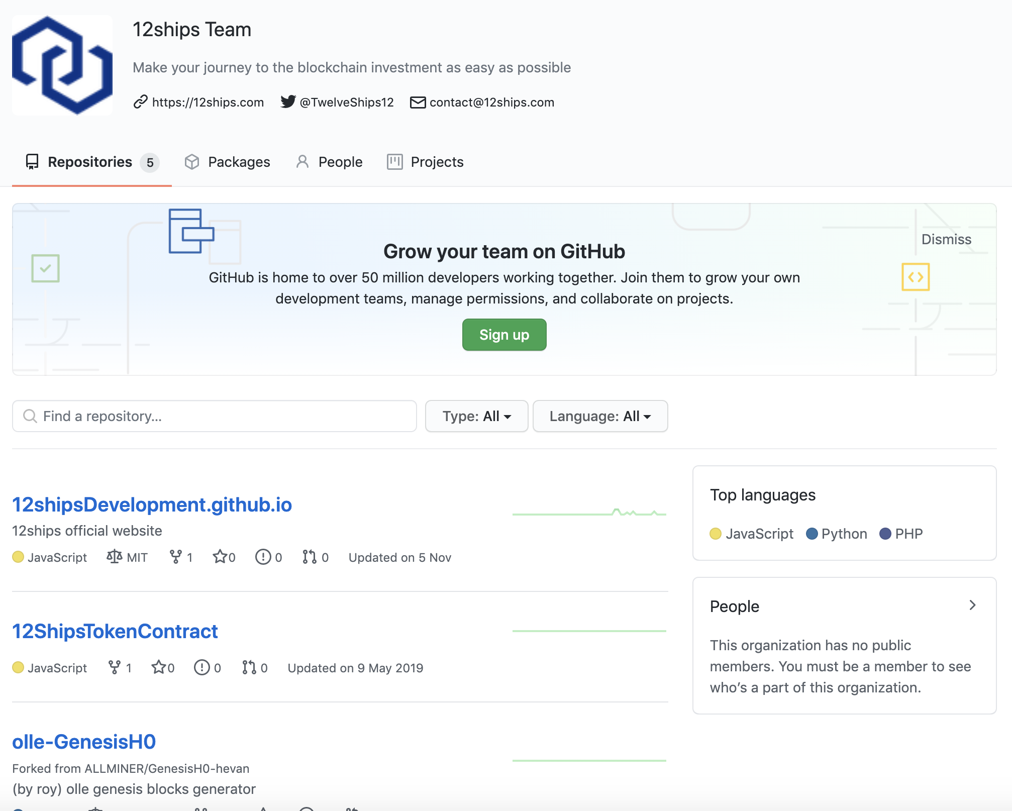 트웰브쉽스 오픈소스 프로젝트를 들어가보면 5개의 저장소가 존재하는 것을 확인할 수 있습니다. 하지만 현재까지 활성화된 프로젝트는 딱히 없네요. 최근 업데이트되었던 12shipsDevelopment.github.io는 단순 트웰브쉽스 공식 웹사이트 코드로 코인과 관련된 프로젝트는 아닌 것으로 확인되었습니다.