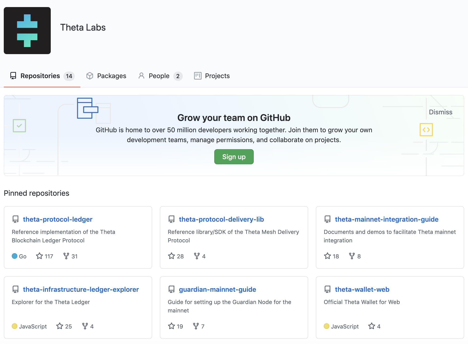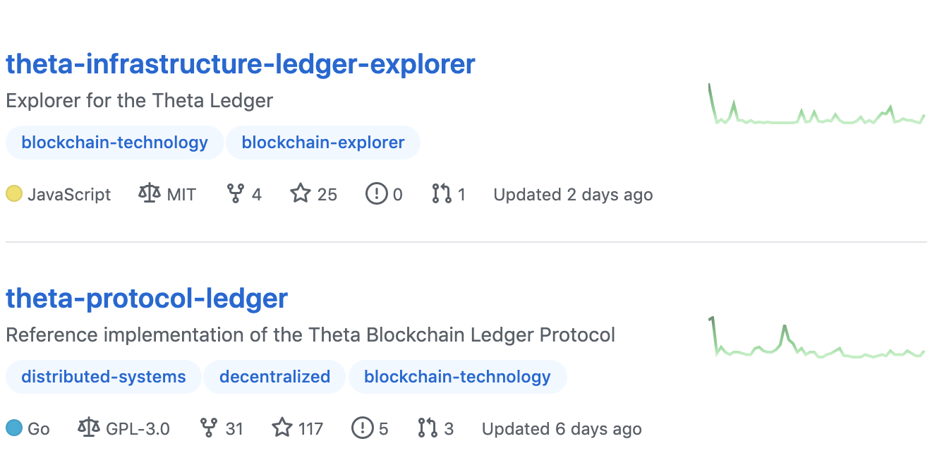 쎄타퓨엘 코인 개발현황은 아래 깃허브 오픈소스 웹사이트에서 확인할 수 있습니다. Theta Labs라는 이름으로 프로젝트가 오픈되어 있습니다.