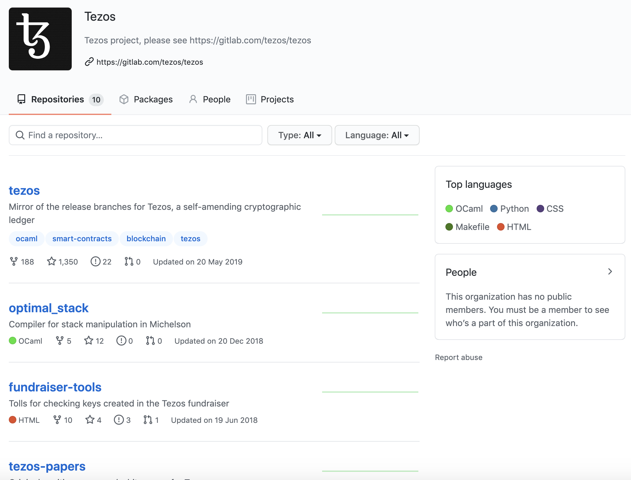 Tezos project, please see https://gitlab.com/tezos/tezos - Tezos