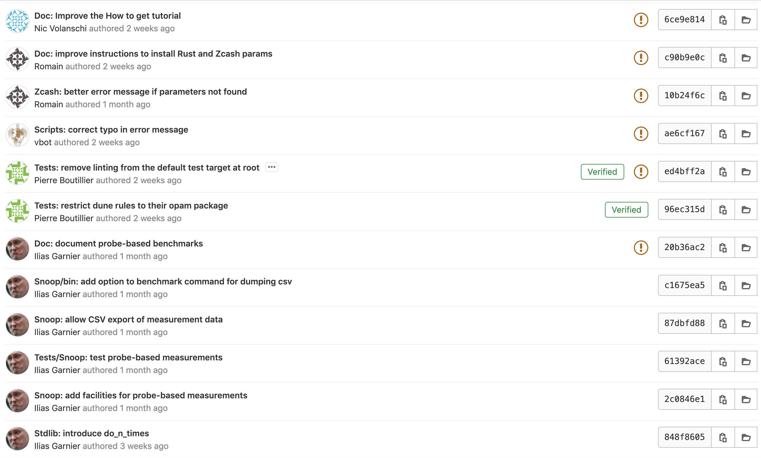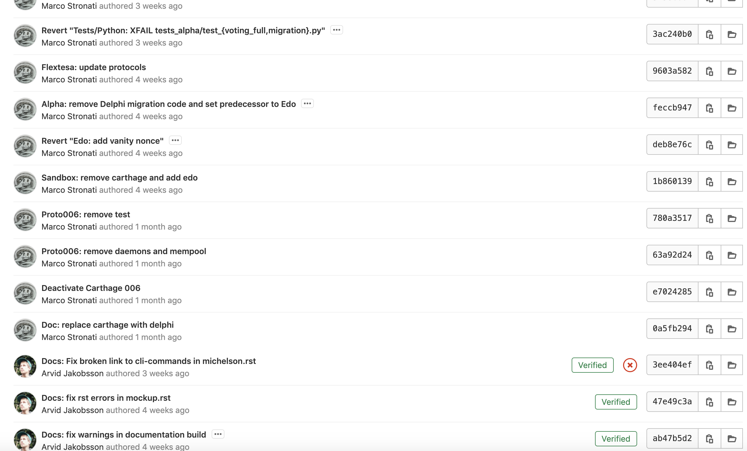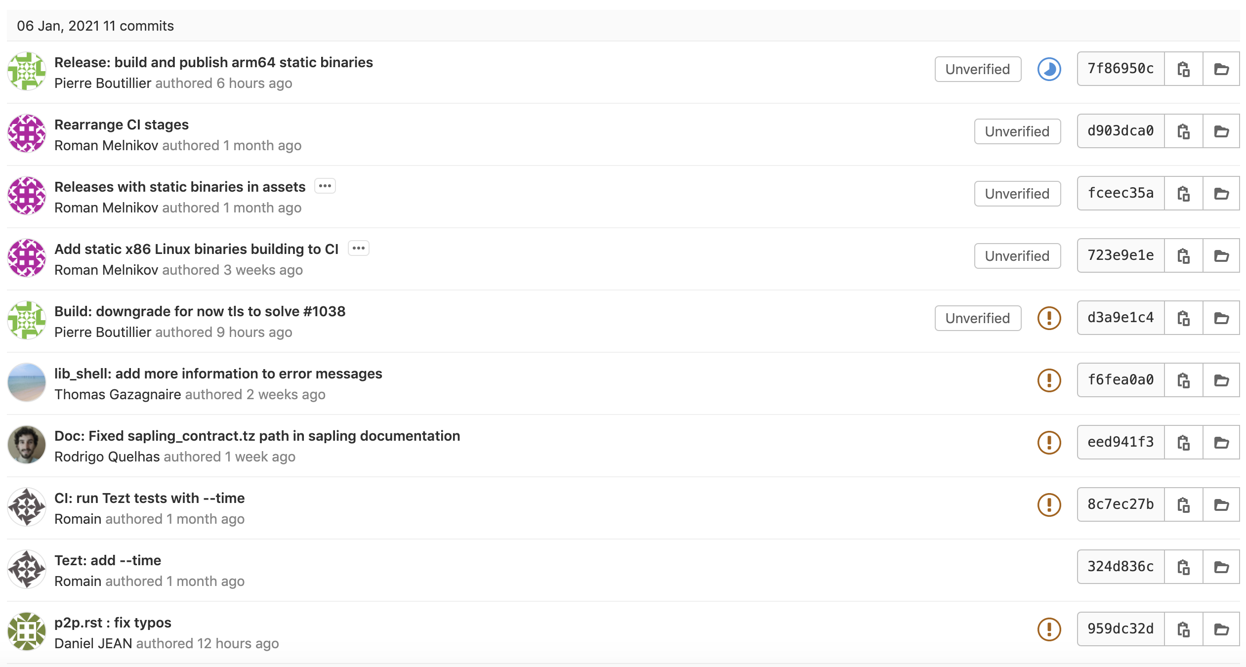 테조스 프로젝트에 기여한 개발자 목록입니다. 굉장히 많은 사람들이 테조스 프로젝트에 기여하고 있음을 확인할 수 있습니다.