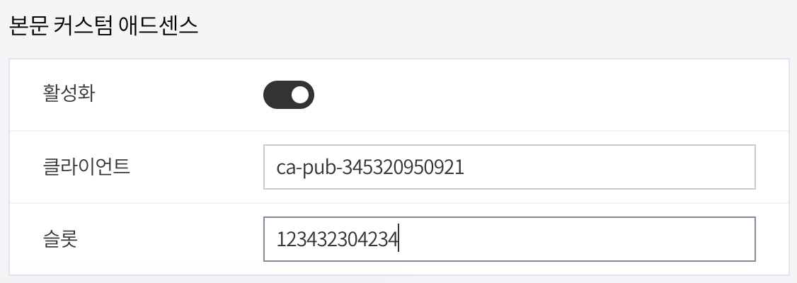 ins.setAttribute("data-ad-client", "애드센스 클라이언트 아이디");