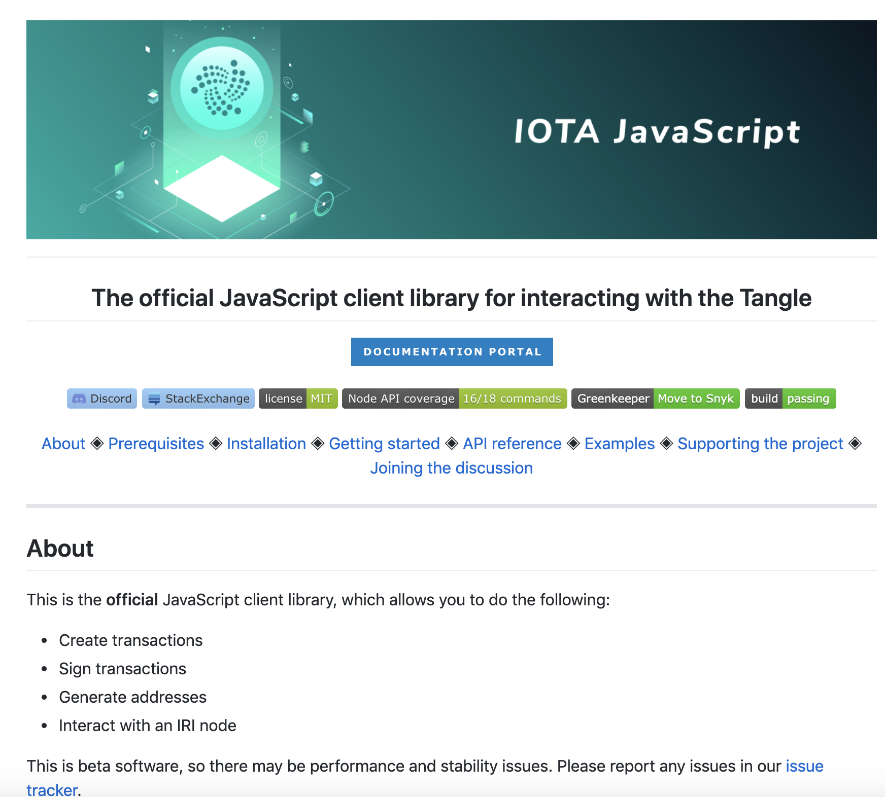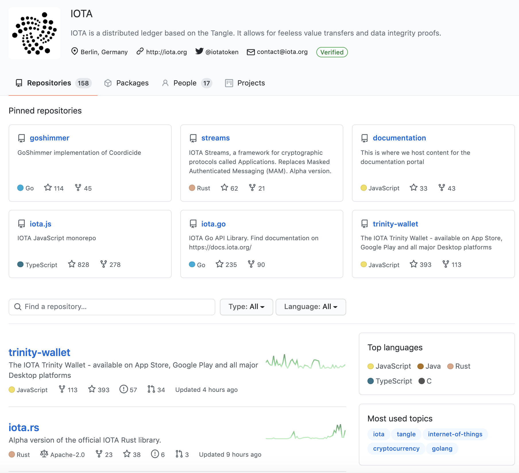 아이오타 코인 공식 홈페이지에 깃허브 오픈소스 프로젝트 경로를 공식적으로 제공하고 있는 것을 확인할 수 있습니다! (개인적으로 당당하게 자신들이 개발하는 결과물을 오픈소스로 공개하는 곳을 굉장히 좋아합니다. 자신이 개발하고 있는 결과물에 떳떳하다는 것이겠죠. 스캠 취급을 당하지 않으려면 이러한 노력이 필요합니다.)