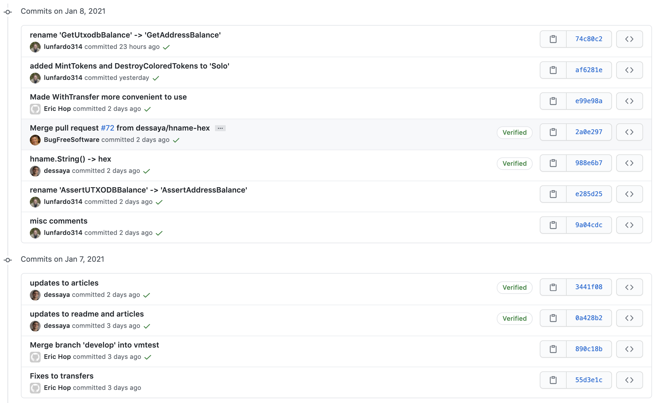 코인 개발을 열심히 한다고 해서 코인의 시세가 무조건 따라오는 것도 아니지만, 적어도 투자자들의 돈을 받아서 놀고 먹고 삥땅치는 회사는 아니라는 것은 알 수 있다는 것이죠. 만약 해당 코인에 투자를 하기 위해 백서를 읽어보신 분들은 백서와 비교해보면서 깃허브 프로젝트들을 비교해보며 해당 코인이 백서에 적어놓은 로드맵대로 프로젝트가 잘 진행되고 있는지 파악하는 것도 굉장히 중요합니다. (깃허브라는 오픈소스 사이트에 개발 소스가 투자자들에게 공개되어야되는 이유기도 합니다. 백서만 읽고 투자자의 정말 피같은 투자금을 투자하기에는 정보가 너무 한정적이지 않나요? 코인을 개발하는 회사에서도 이러한 불신을 해소하기 위해 자신들의 개발 결과물에 대해서 공개를 해야할 의무도 있다고 생각합니다.)