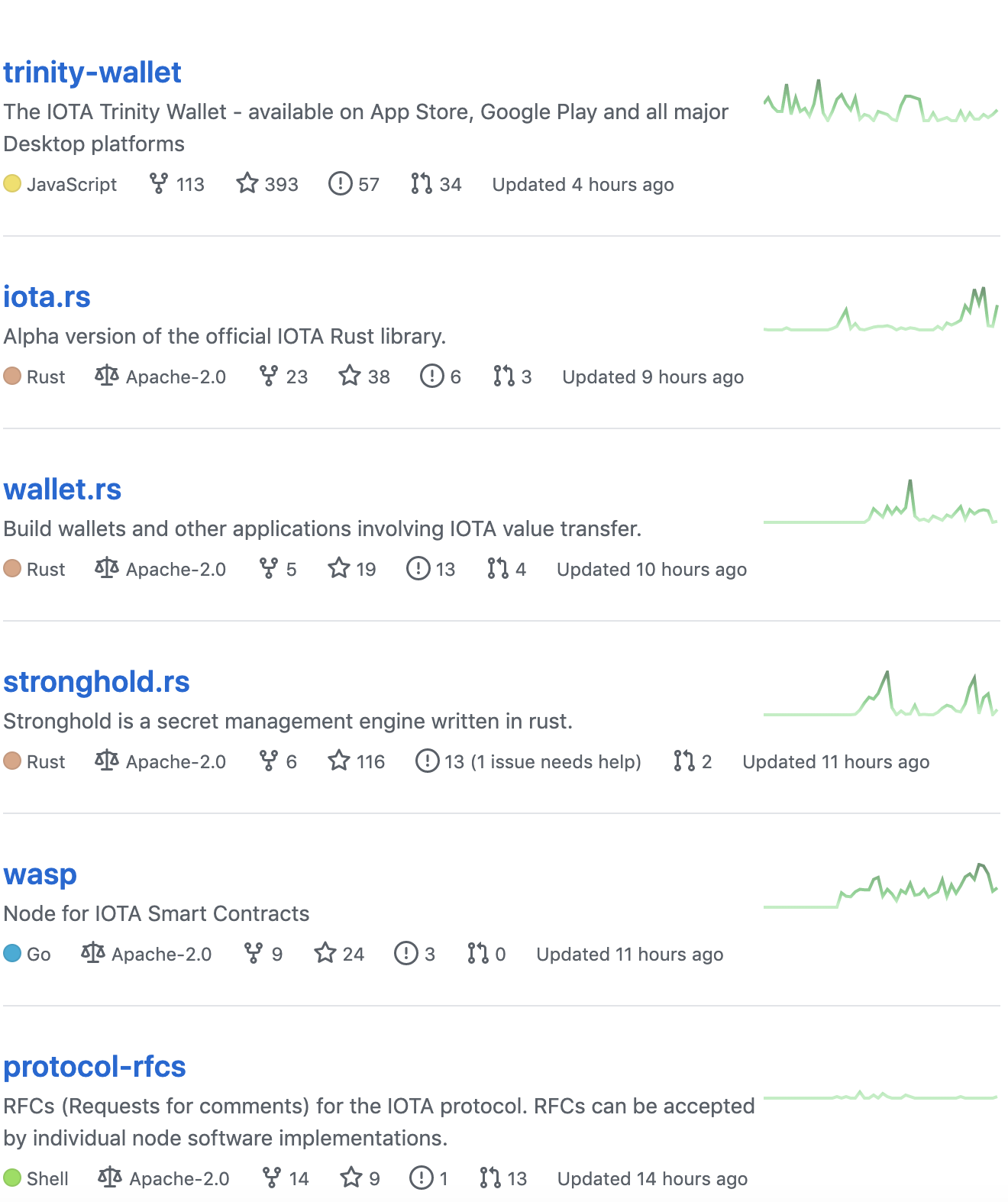 아래는 현재 아이오타 프로젝트 내에서 최근 업데이트된 목록들입니다. 많은 프로젝트들이 빈번하게 업데이트되고 있는 것을 확인할 수 있습니다.