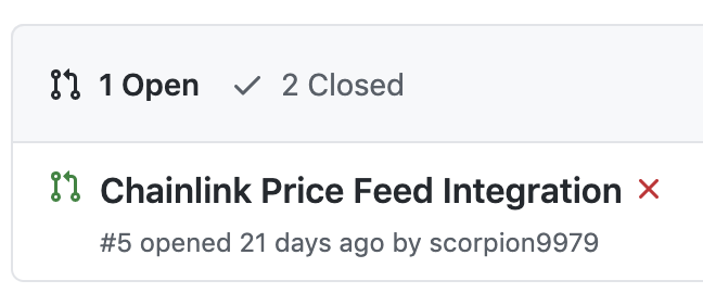 현재 프로젝트에서 열려있는 PR은 1건이고, 종료된 PR은 2건입니다. (추측하건데, 아마 프로젝트를 혼자 개발하여 수정하는 족족 마스터 브랜치에 바로 병합시키는 느낌이 듭니다)