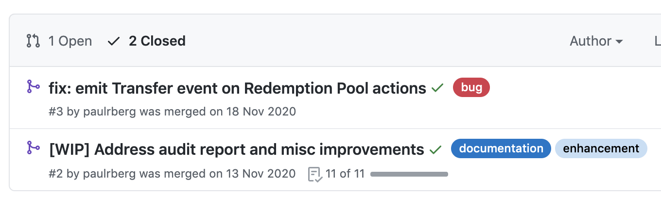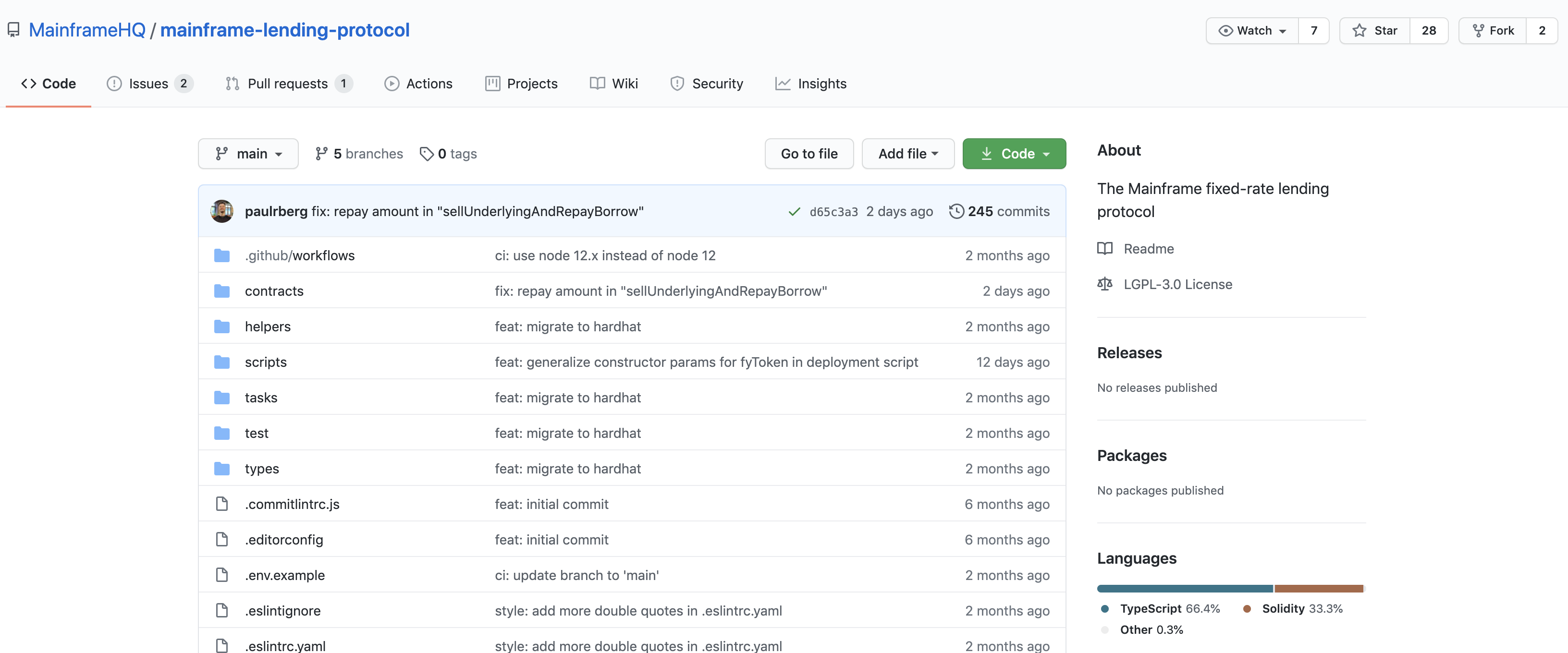 역시나 제가 위에서 예상했던 것처럼 프로젝트에 참여하고 있는 개발자는 paulrberg 개발자 1명밖에 없는 것을 확인할 수 있습니다.