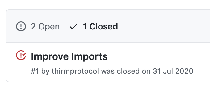 해당 프로젝트는 현재 2개의 이슈가 열려있고, 1개의 이슈가 완료된 것을 확인할 수 있습니다. 이슈는 굉장히 적은 편에 속합니다.