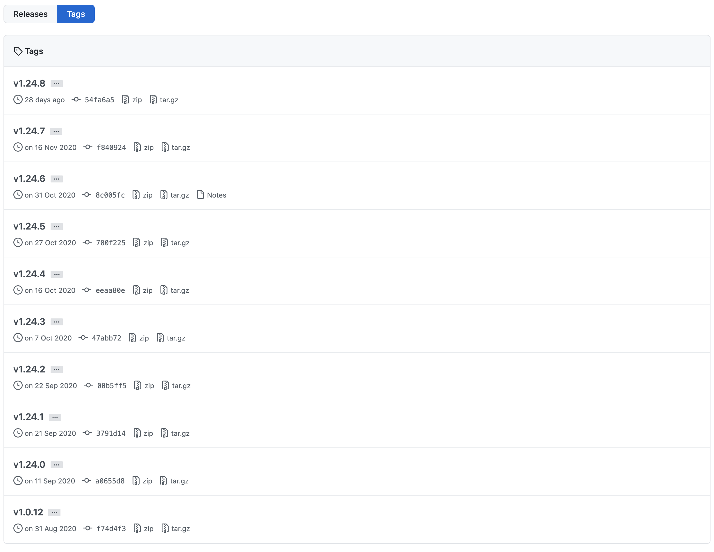 해당 프로젝트에서는 릴리즈와 태그 관리가 잘되고 있는 것을 확인할 수 있습니다.