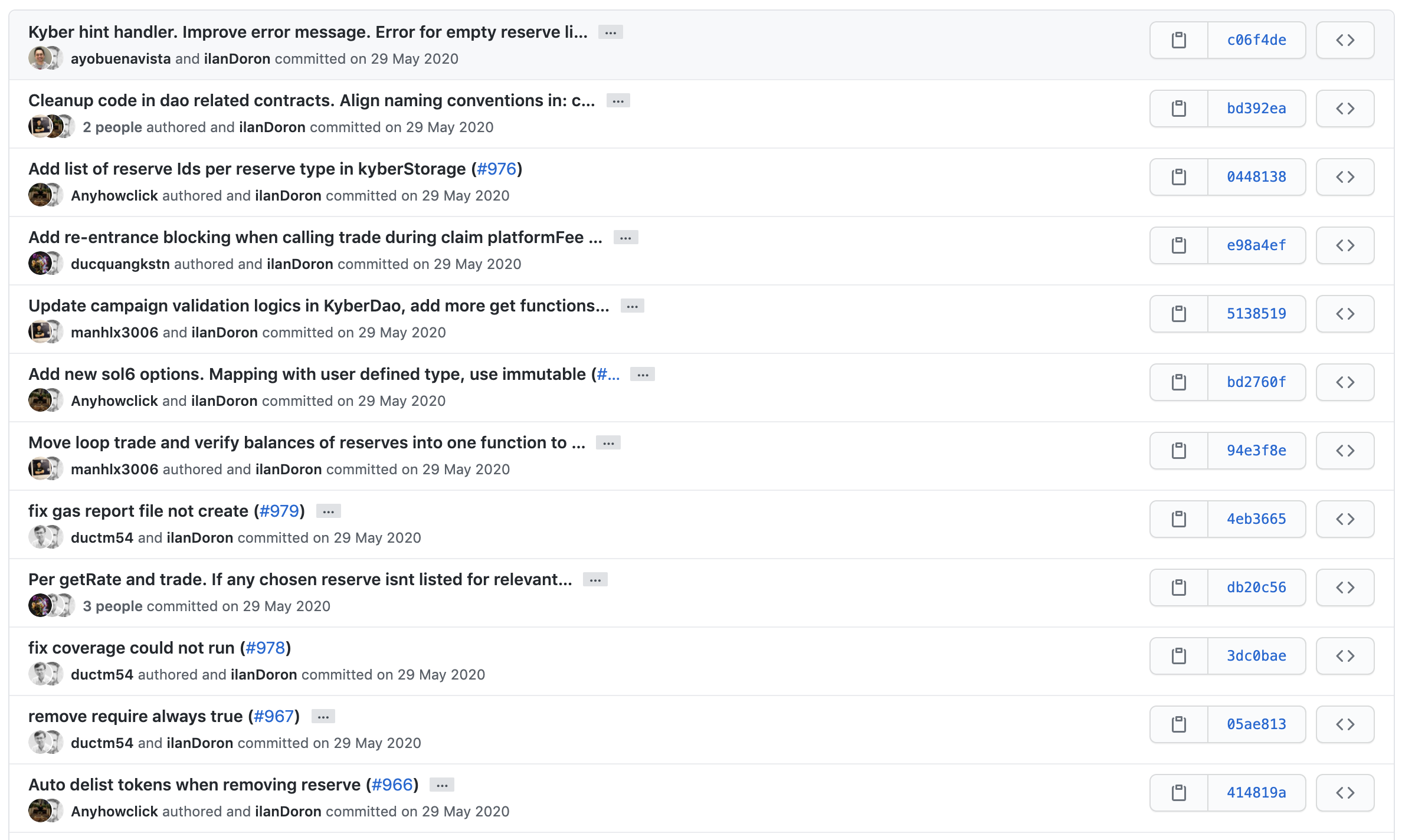 카이버네트워크 개발팀 측에서 메인 프로젝트로 선택한 저장소는 KyberSwap, smart-contracts, reserve-data가 있습니다.
