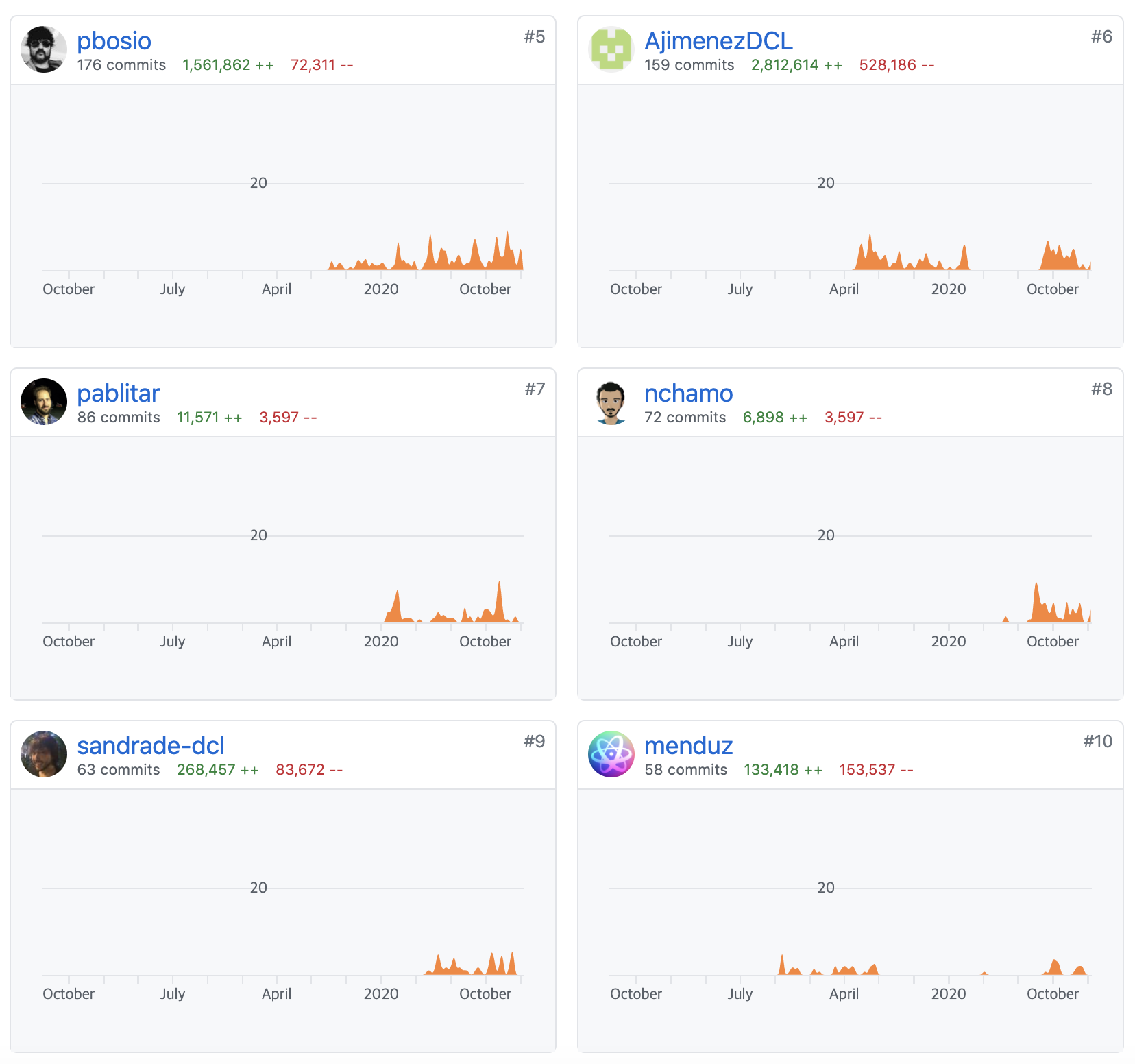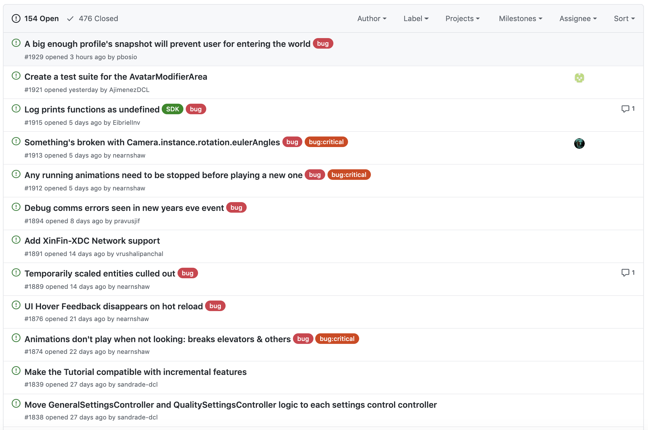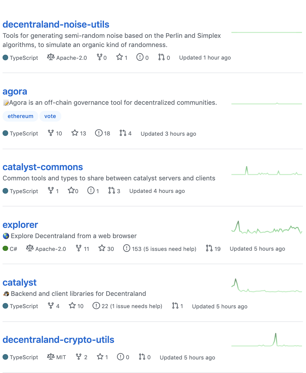 디센트럴랜드 오픈소스 프로젝트들을 살펴보면 업데이트 빈도수는 굉장히 높은 것을 확인할 수 있습니다.